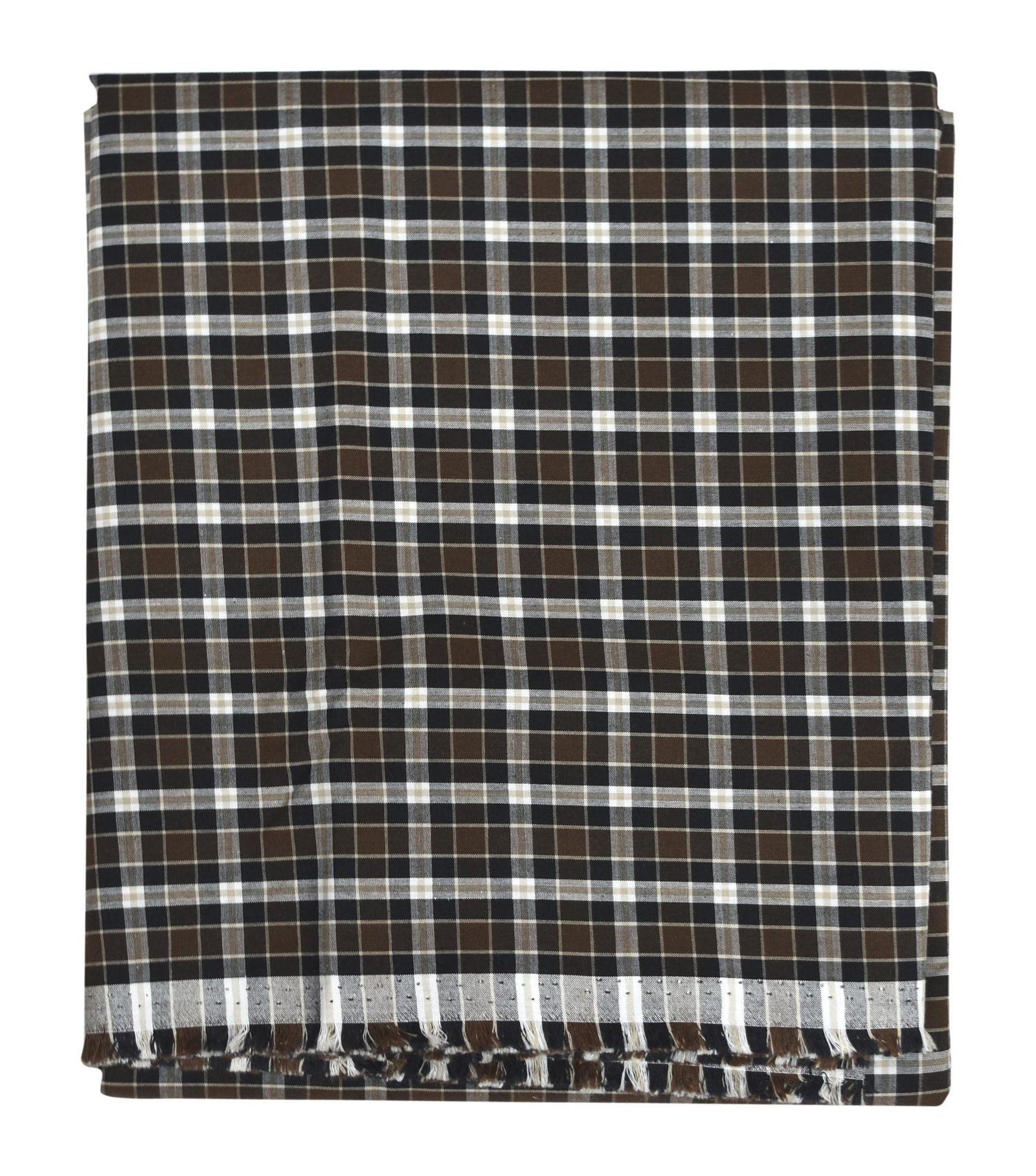 J. Hampstead 100% Giza Cotton Brown Checkered Shirt Fabric 1.6 Mts / VV1194