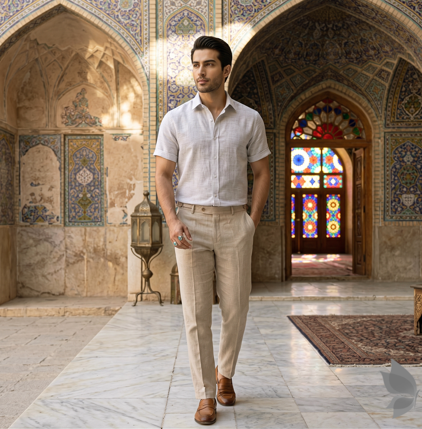 | J.Hampstead Moretti 100% Pure Linen Fabric from "The Luxury Club of Italian Fusion Linen" with Grey Colour Plain Pattern Unstitched Shirt Fabric of 1.6 mts / VV2420 |