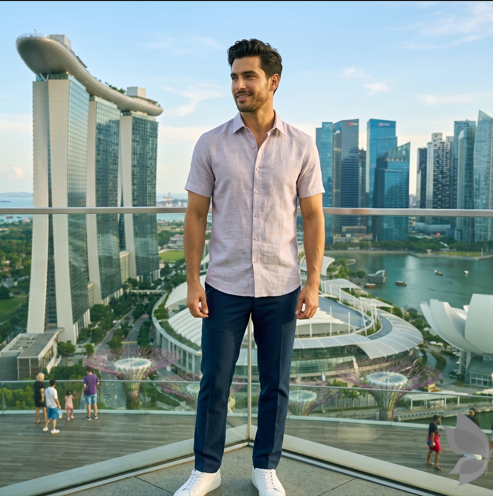 | J.Hampstead Moretti 100% Pure Linen Fabric from "The Luxury Club of Italian Fusion Linen" with Pink (Seashell) Colour Plain Pattern Unstitched Shirt Fabric of 1.6 mts / VV2413 |