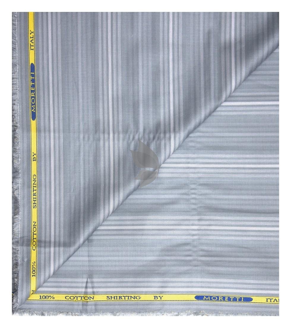 | J.Hampstead Moretti Premium Egyptian Collection with 100% Giza Cotton Grey Colour Striped Pattern Unstitched Shirt Fabric of 1.6 mts - Made In Italy / VV2436 |