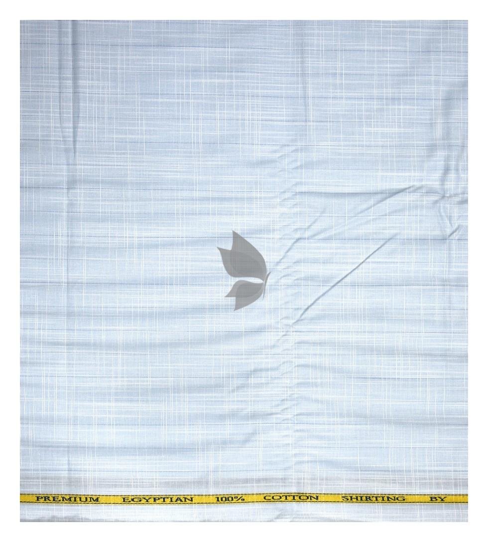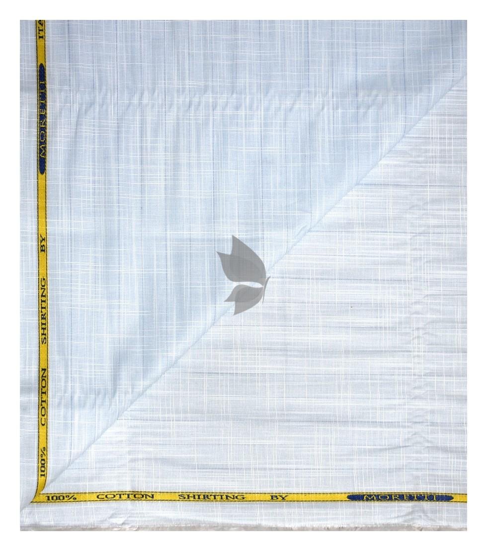 | J.Hampstead Moretti Premium Egyptian Collection with 100% Giza Cotton Light Blue (Baby Blue) Colour Striped Pattern Unstitched Shirt Fabric of 1.6 mts - Made In Italy / VV2553 |