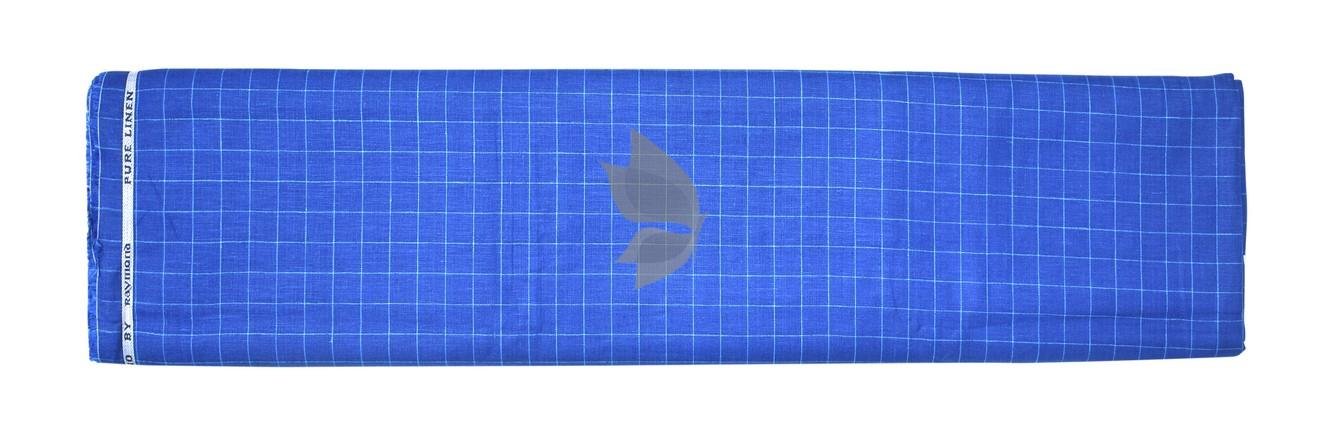 Raymond 100% Pure Linen Blue (Ultramarine) color Checkered Unstitched Shirt Fabric of 1.6 meters / VV2389Z