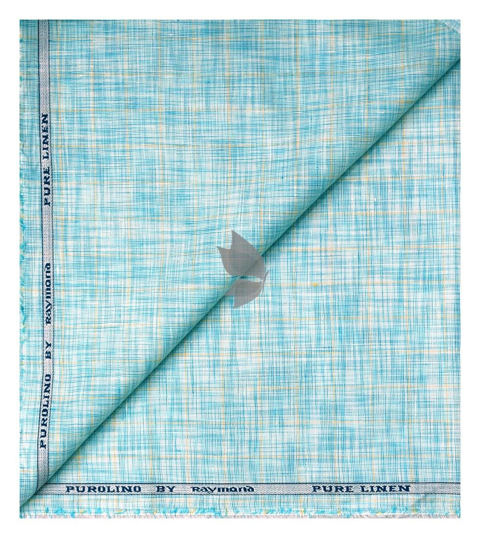 Raymond 100% Pure Linen Light Blue (Aqua) color Checkered Unstitched Shirt Fabric of 1.6 meters / VV2389AA