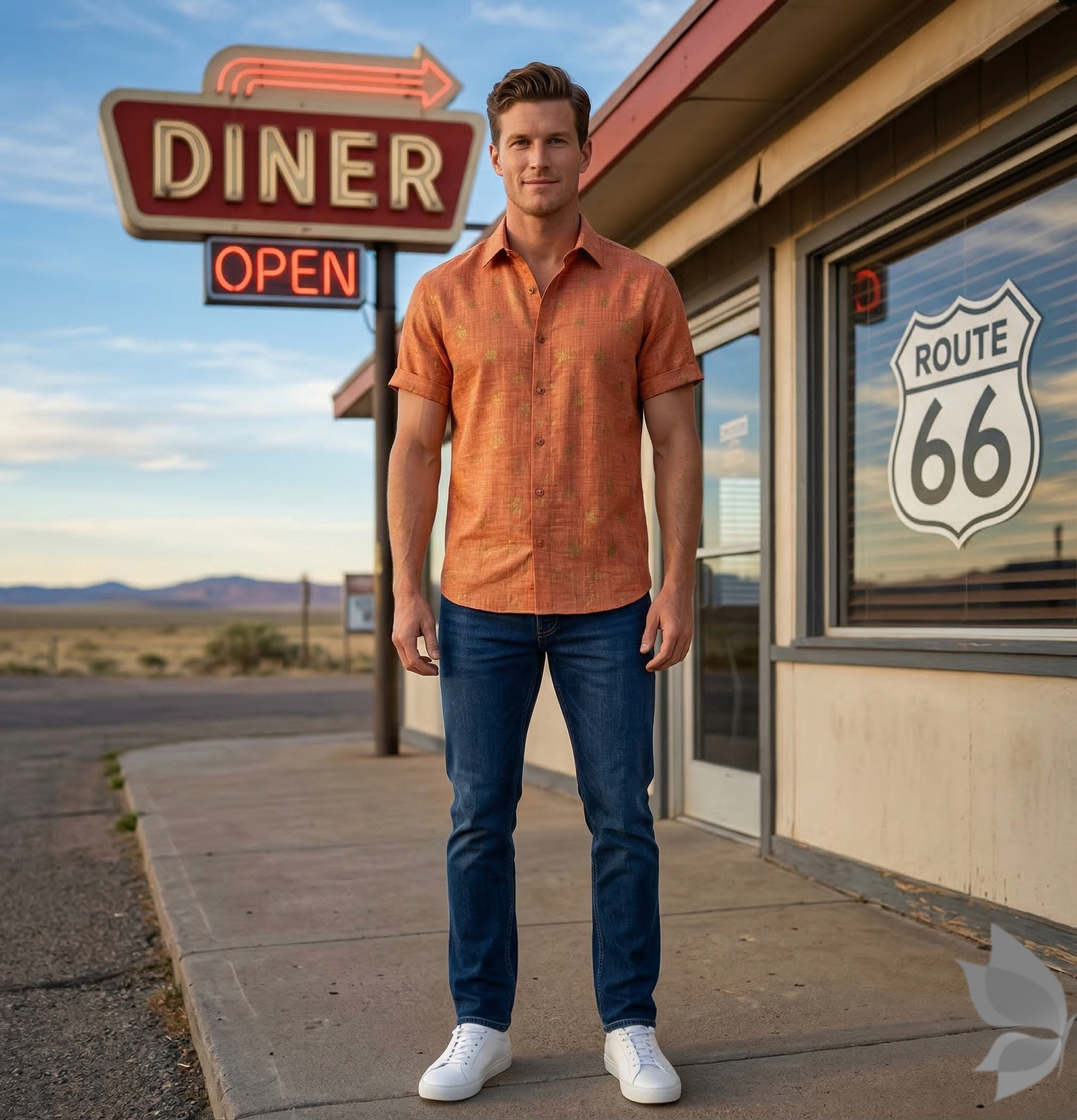 Raymond 100% Pure Linen Orange (Salmon) color Printed Unstitched Shirt Fabric of 1.6 meters / VV2389P