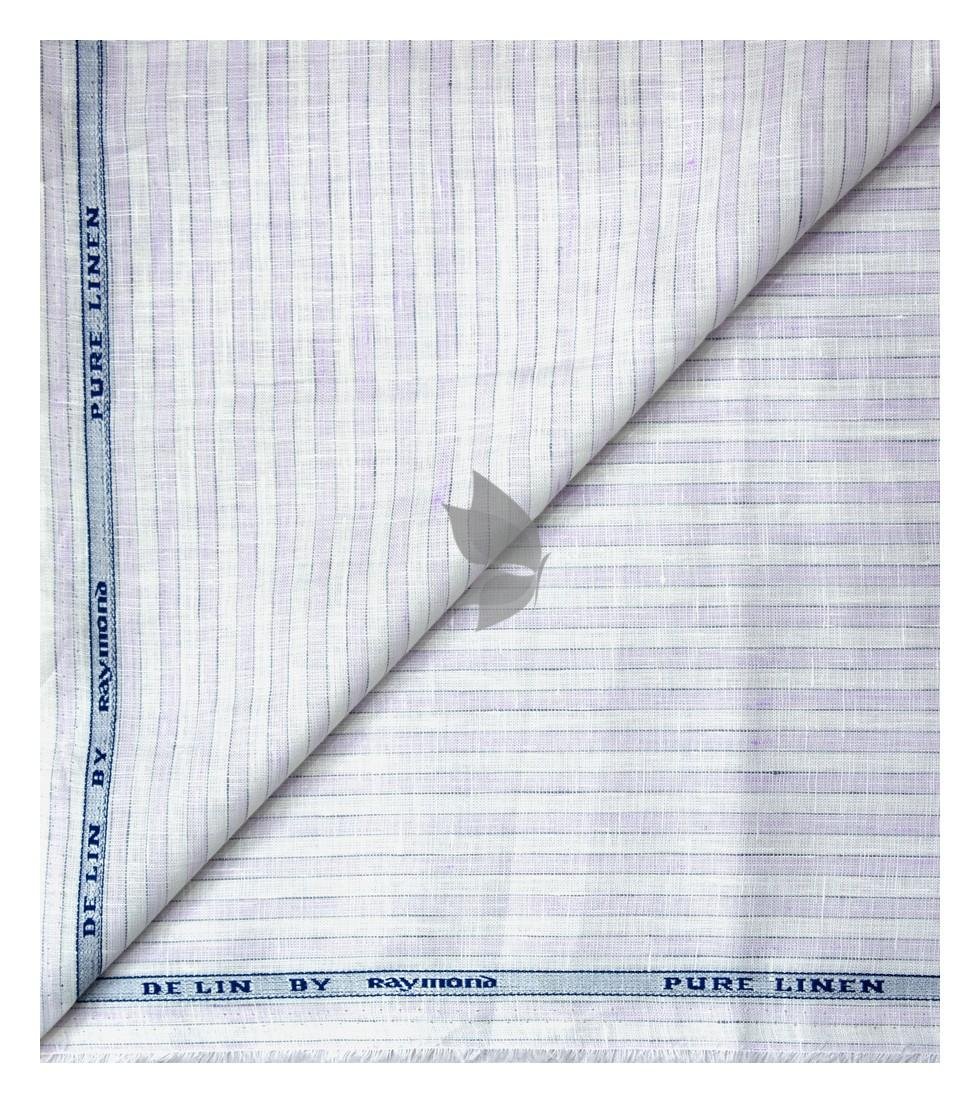 Raymond 100% Pure Linen White color Vertical Striped Unstitched Shirt Fabric of 1.6 meters / VV2389U