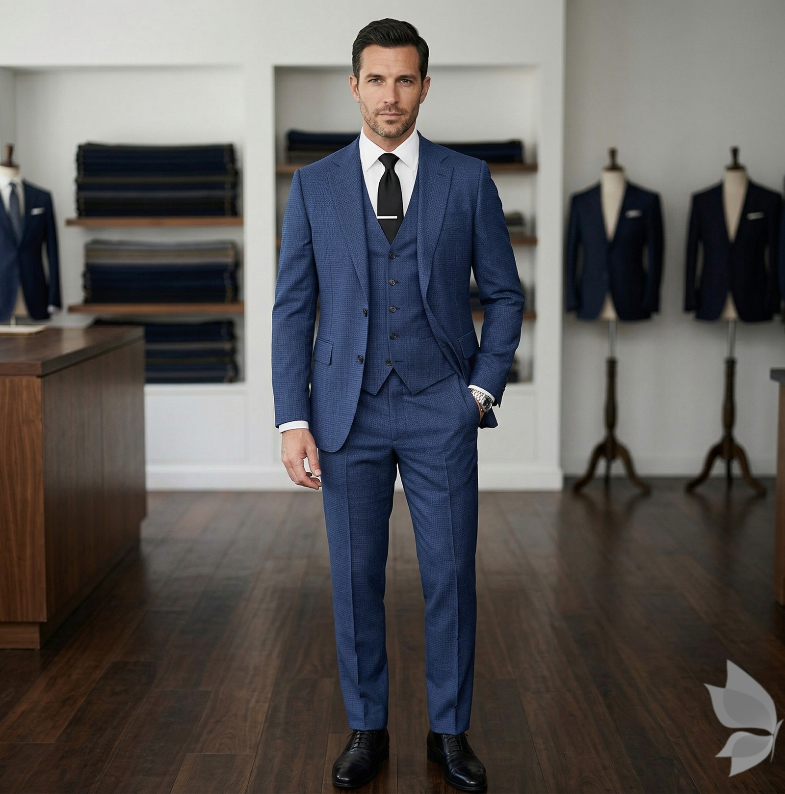 Raymond 100% Pure Wool (All Wool) Jacquard Blue Color Unstitched Suit Fabric - 3.5 Mts / VV2065