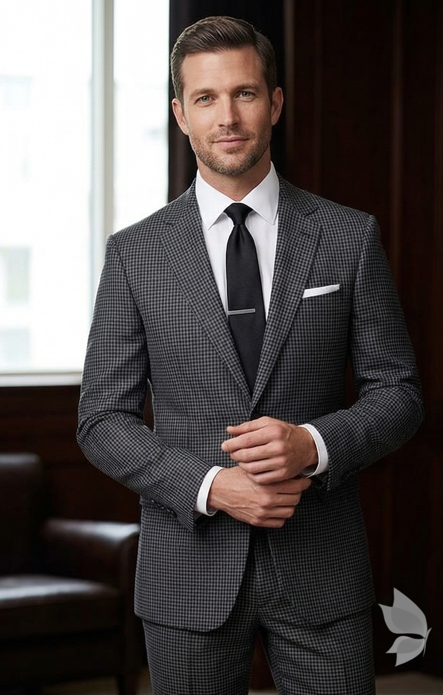 Raymond 100% Pure Wool (All Wool) Thick Grey Color Checkered Unstitched Suit Fabric - 3 Mts / VV2042
