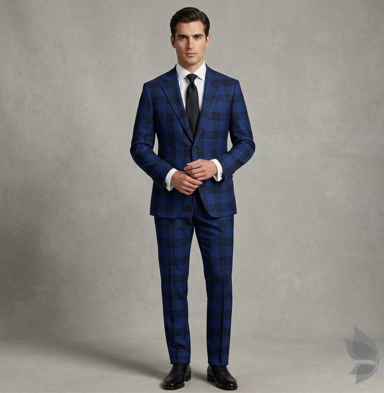 Raymond 100% Pure Wool (All Wool) Thick Royal Blue Color Checkered Unstitched Suit Fabric - 3 Mts / VV2052