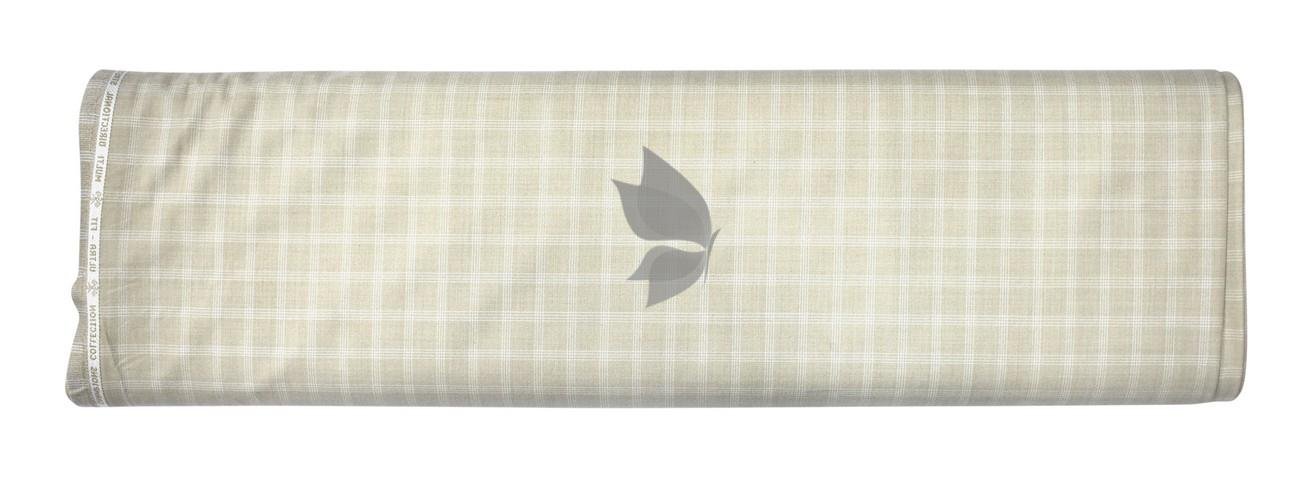 Raymond Champions Collection made from Super 90's wool with multi directional stretch fabric for ultra fit Beige colour checkered pattern unstitched suit fabric of 3.5 Mts / VV2688