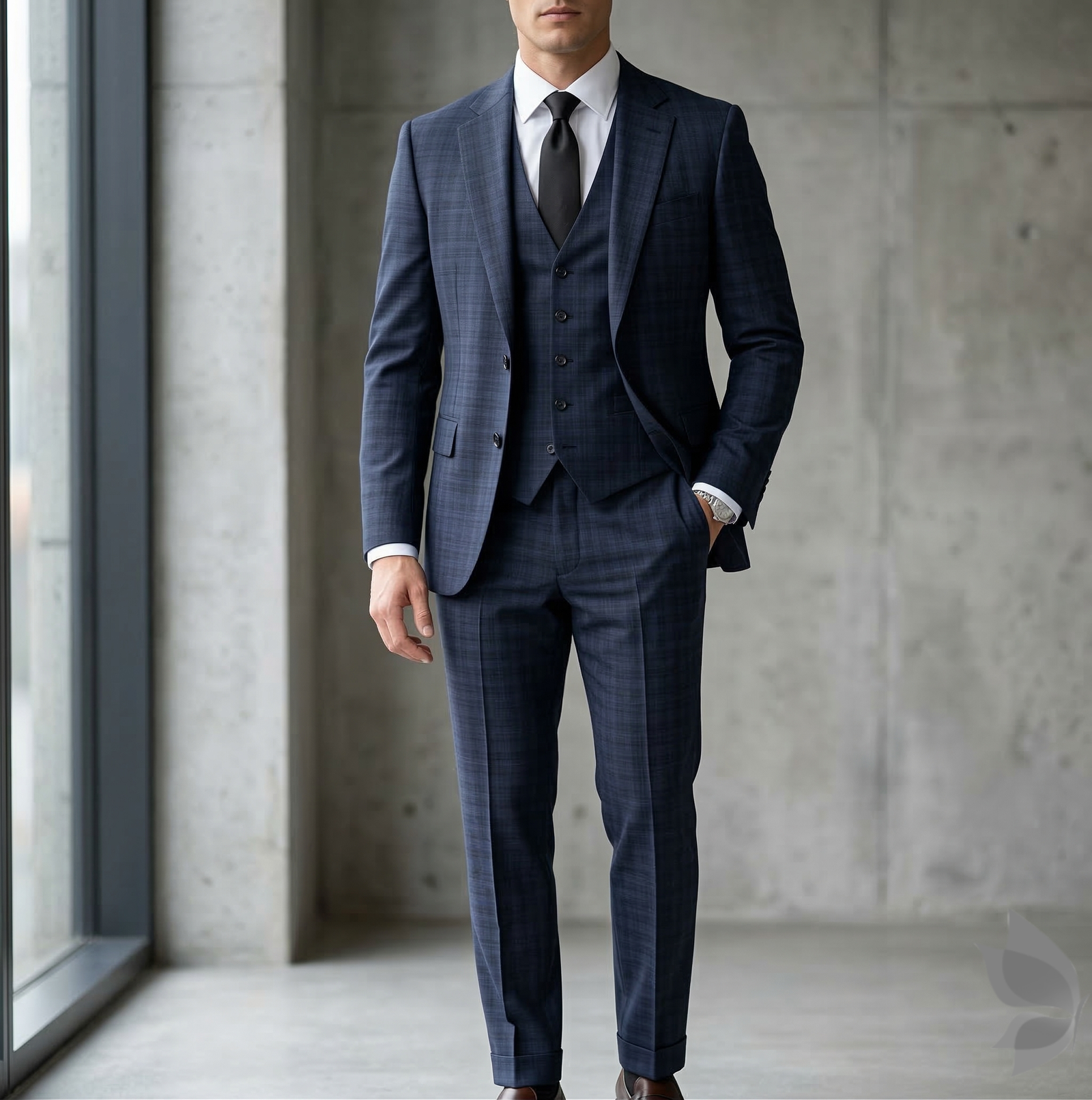 Raymond Luxurious fabrics with Super 120's Wool count & made with 70% wool "Luxolite" Collection Navy Blue colour Checkered Unstitched Suit Fabric of 3.5 Mts / VV2654