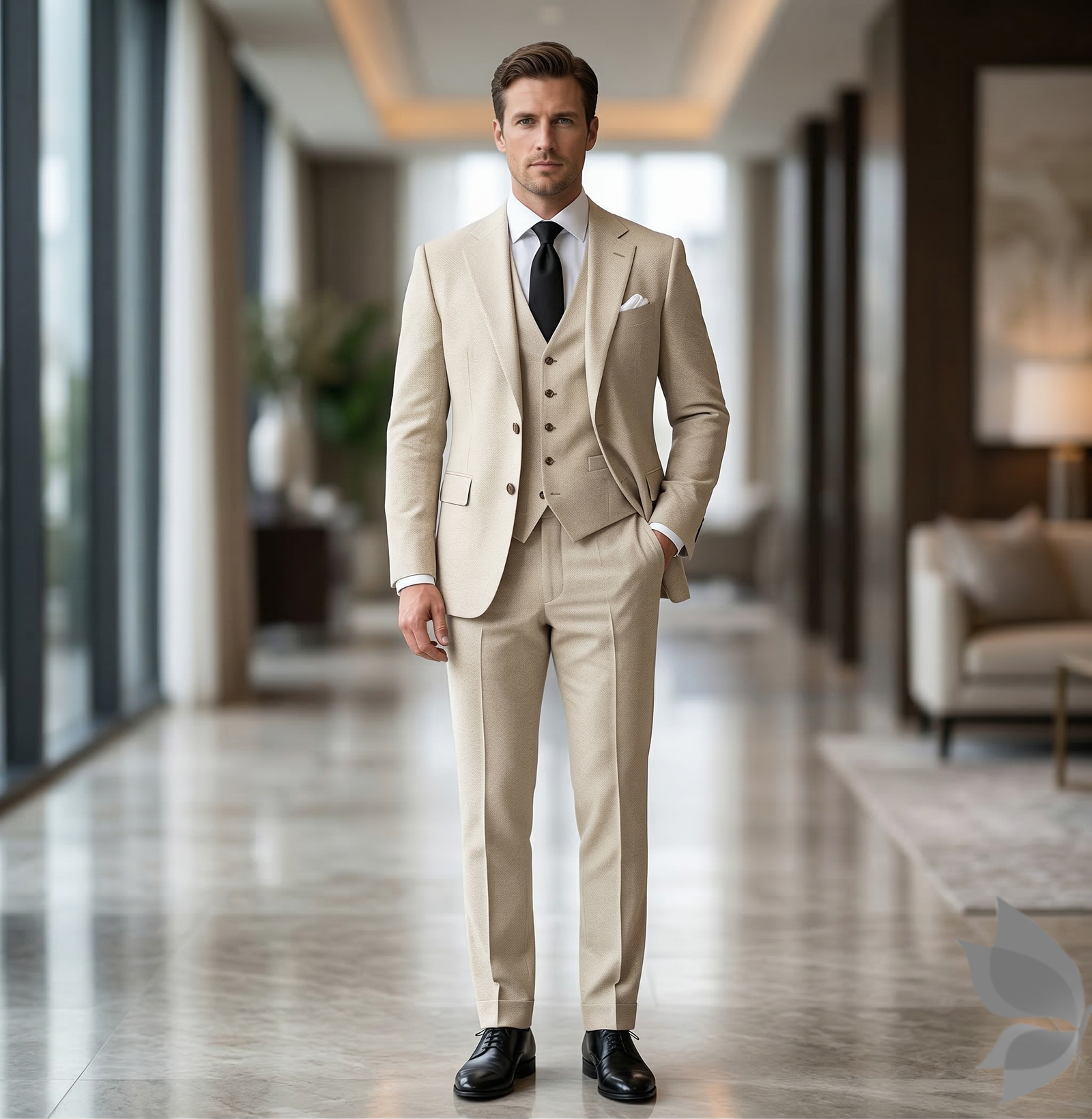 Raymond Soft & Pliable fabric, Viscose blended Beige colour Jacquard pattern unstitched suit fabric of 3.5 Mts / VV2718