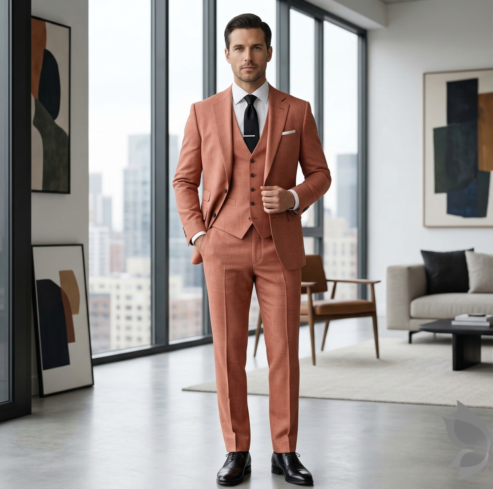 Raymond Super 100's Merino Wool made from Soft and Gentle Fabric Peach Plain Unstitched Suit Fabric - 3.5 meters / VV2153