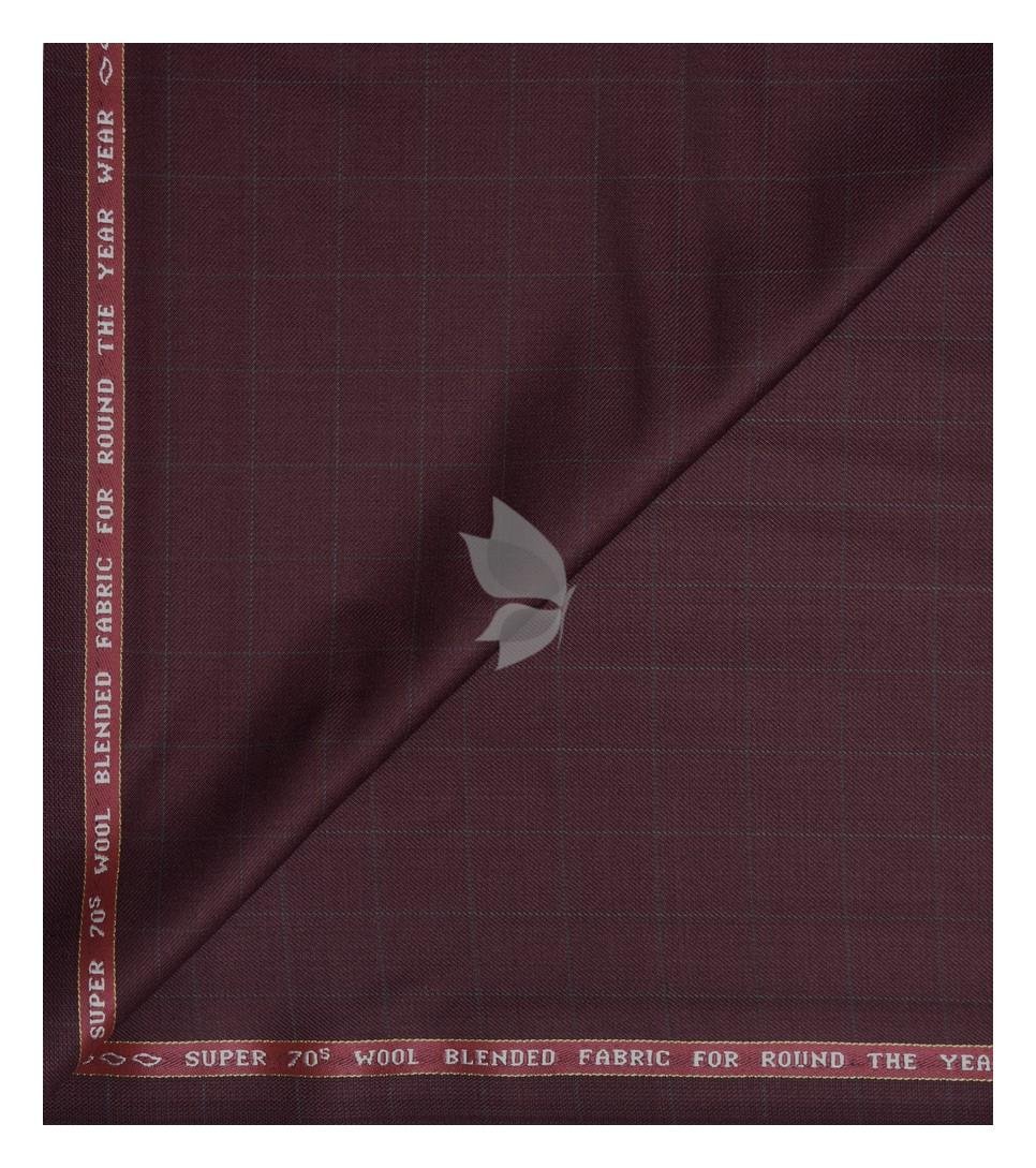 Raymond Super 70's Australian Merino Wool Fabric Round the Year Wear with Checkered Pattern Maroon (Rosewood) colour Unstitched Trouser Fabric of 1.3 Meters / VV2576