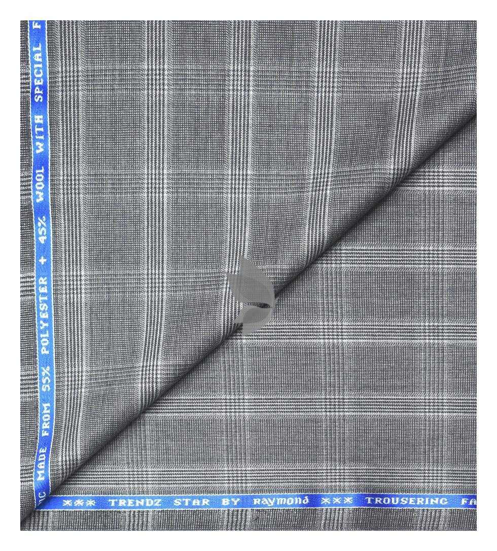 Raymond "Trendz Star" collection blend with 45% Australian merino wool, Special finish care Grey colour Checkered pattern unstitched trouser fabric of 1.25 Mts / VV2701