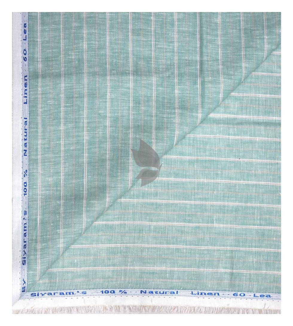 Siyaram's 100% Pure Linen 60 Lea Striped Green colour Unstitched Shirt Fabric of 1.60 mts / VV2519