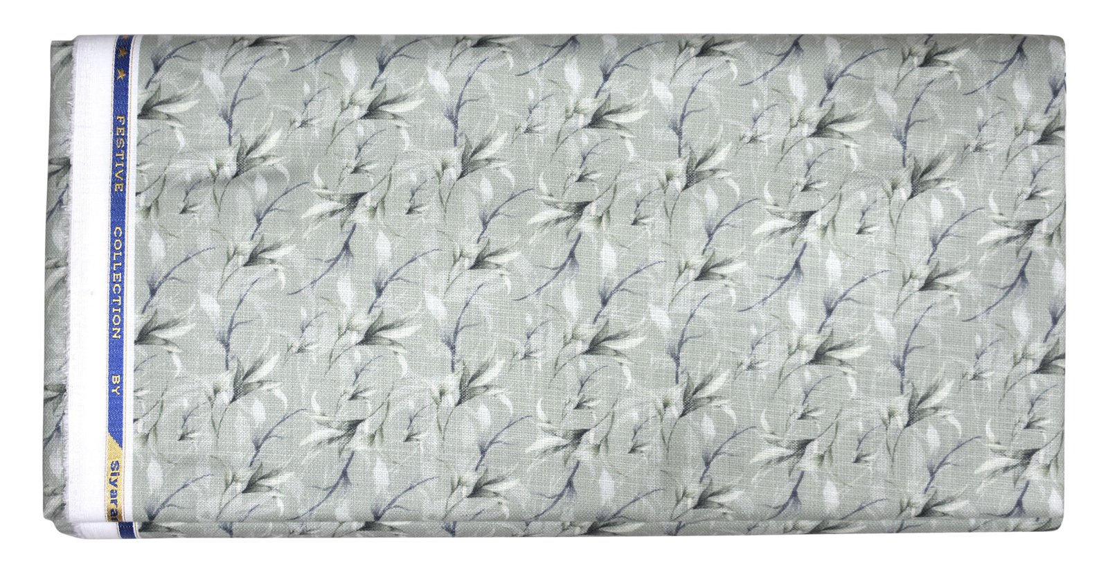 Siyarams festive collection printed pattern with hemp blended Green (Celadon) color unstitched men's Kurta / sherwani / top fabric of 2 meters / VV2303