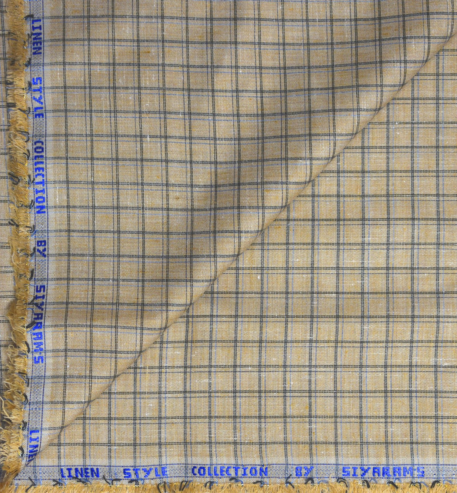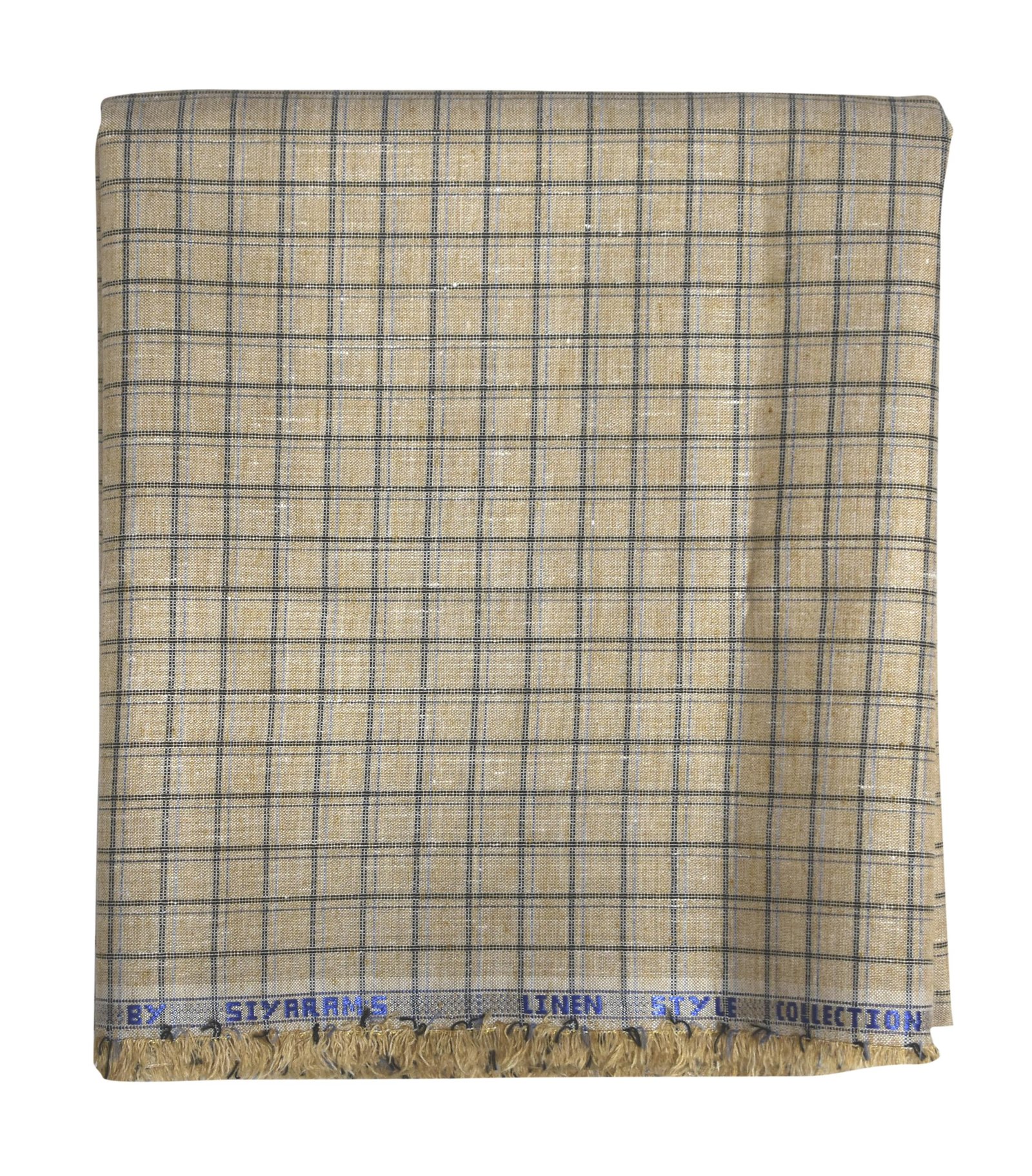 Siyaram's Linen Cotton Checkered Brown Unstitched Shirt Fabric 1.6 Mts - VV6985 /S424