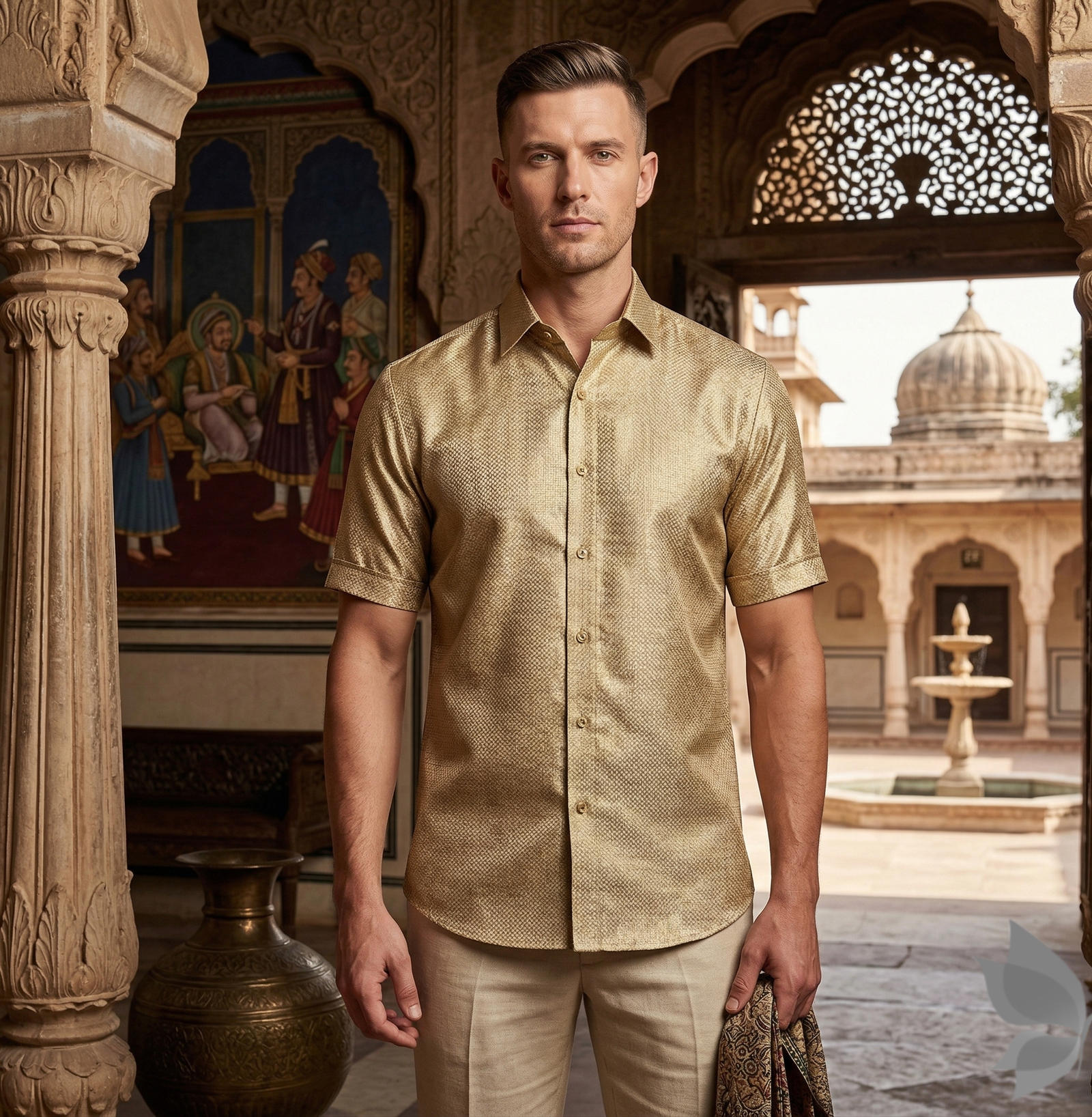 Siyaram's "Revista Collection" 100% Pure Royal Linen 60 Lea Jacquard Dark Beige colour Unstitched Shirt Fabric of 1.60 mts / VV2493
