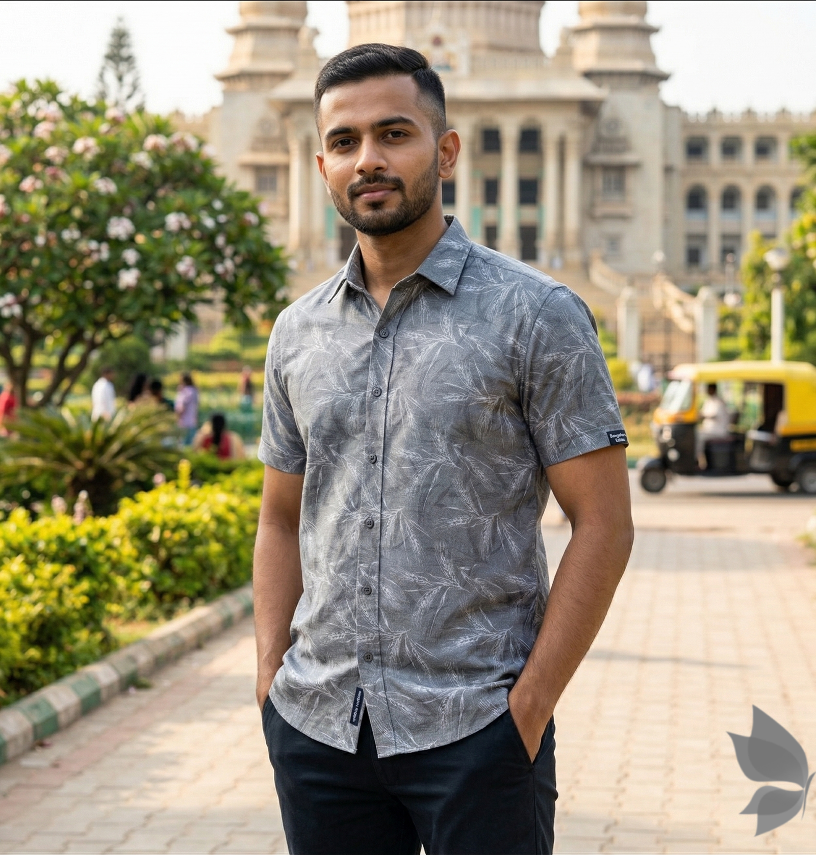 Siyaram's Royale Linen 100% Linen with 60 Lea count Digital Printed Grey Colour Unstitched Shirt Fabric of 1.6 Meters / VV2615