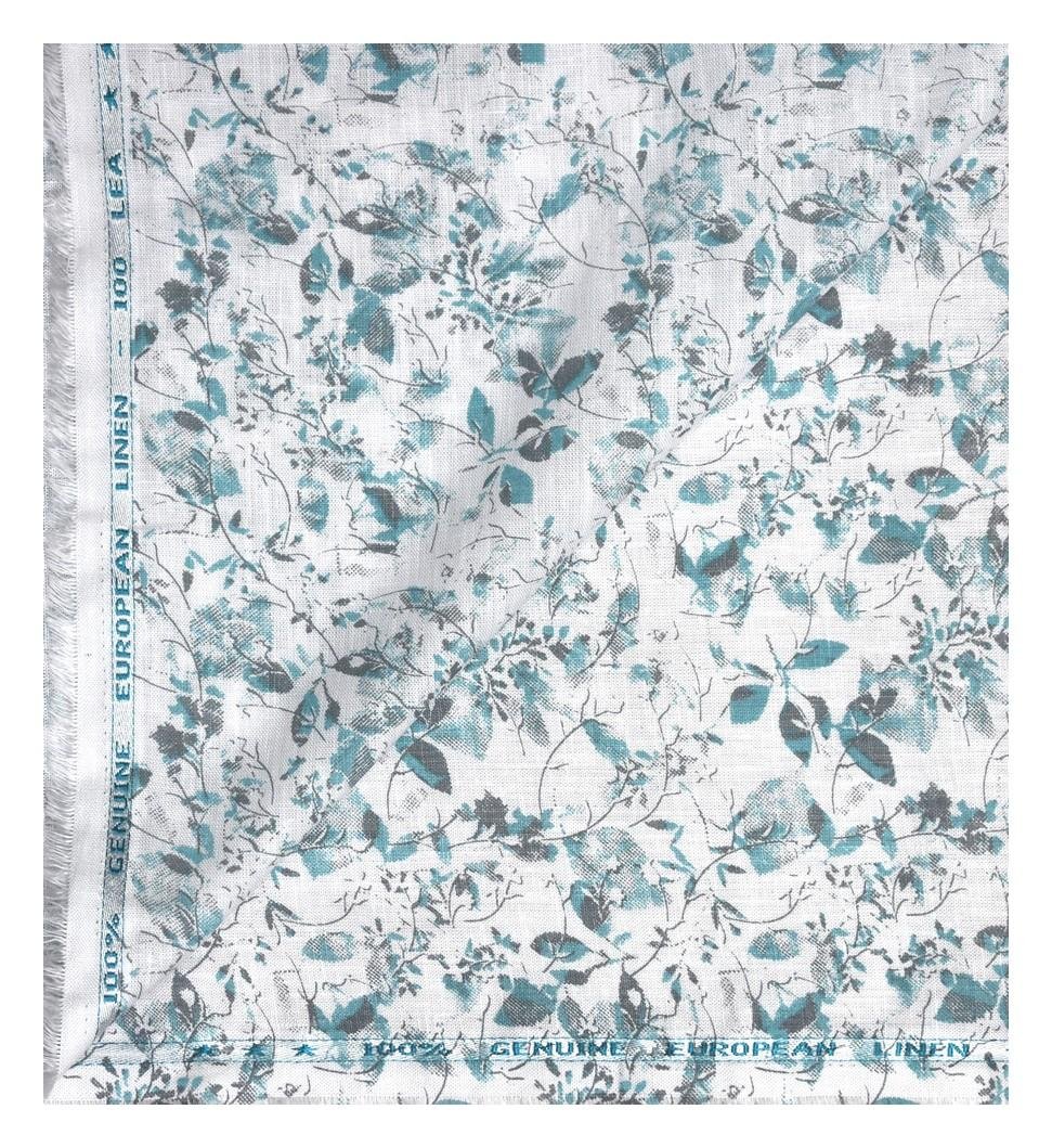 Weaves Empire 100% Genuine European Linen with 100 LEA count Blue colour Printed Unstitched Shirt Fabric - 1.60 Mts / VV2191