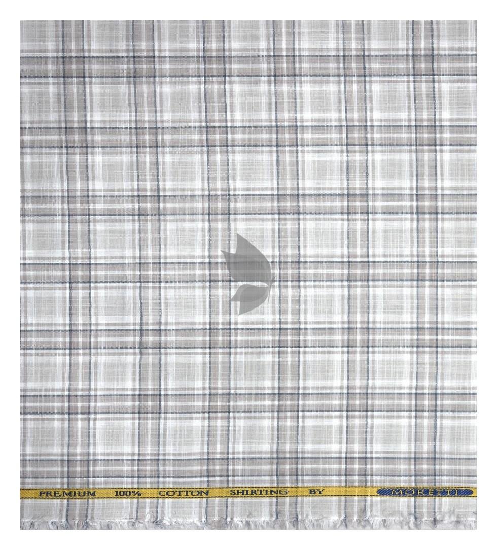 | J.Hampstead Moretti Premium Collection with 100% Giza Cotton Grey (Tan) colour Checkered Pattern Unstitched Shirt Fabric of 1.6 mts - Made In Italy / VV2540 |