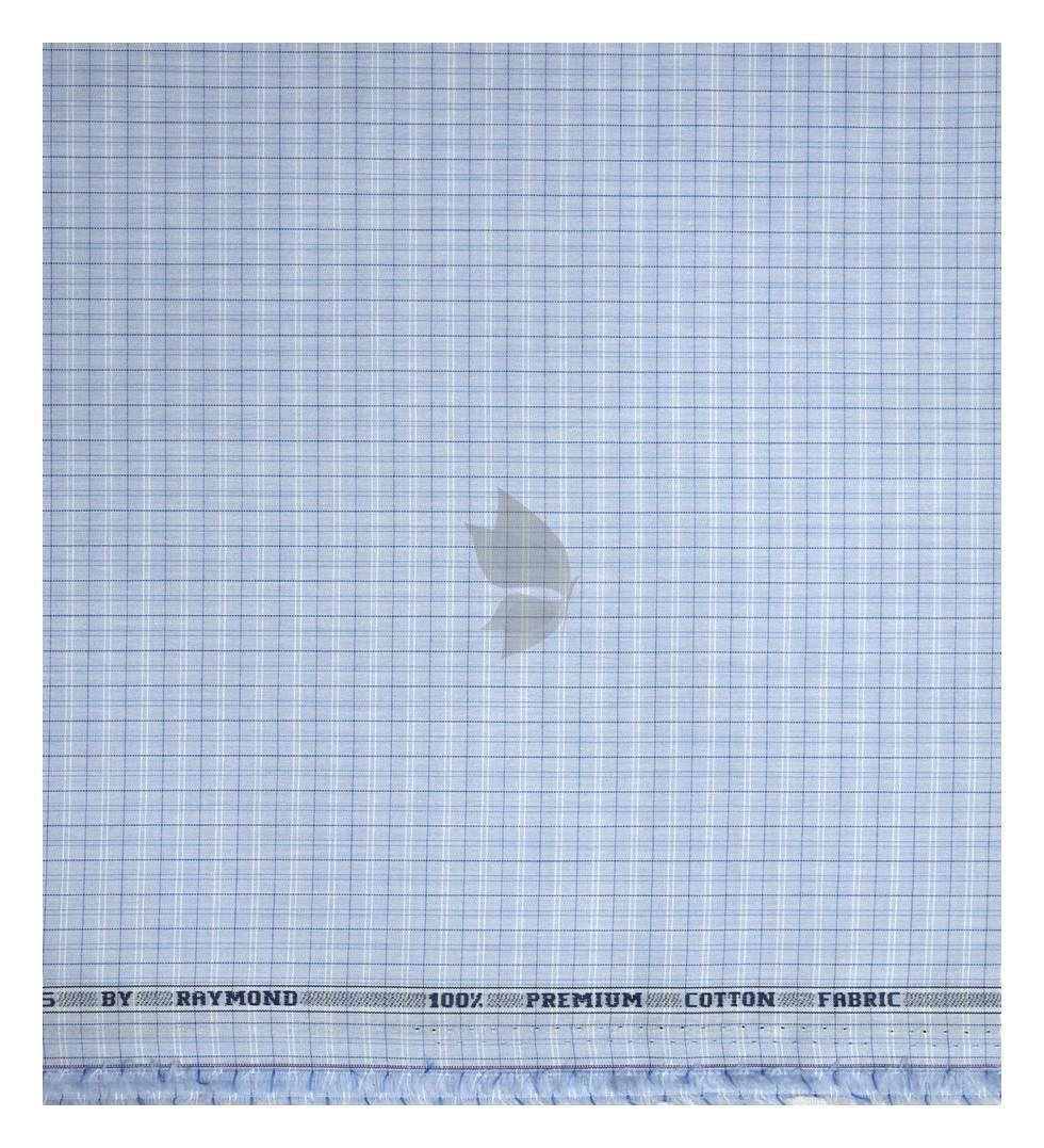 Raymond 100% Premium (Giza) Cotton Checkered Light Blue colour Unstitched Shirt Fabric - 1.60 mts / VV2216