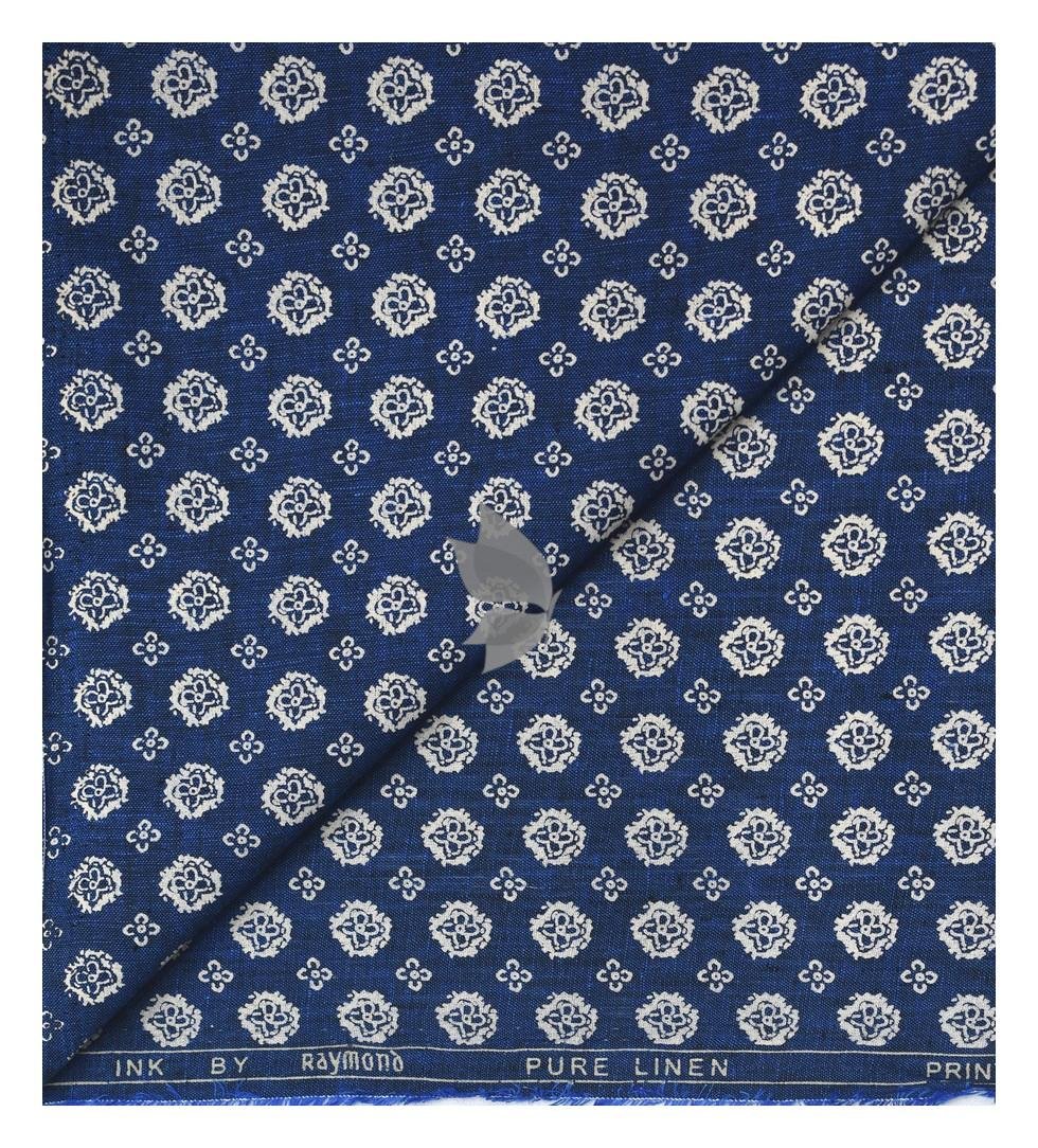 Raymond 100% Pure Linen Blue color Printed Unstitched Shirt Fabric of 1.6 meters / VV2389D