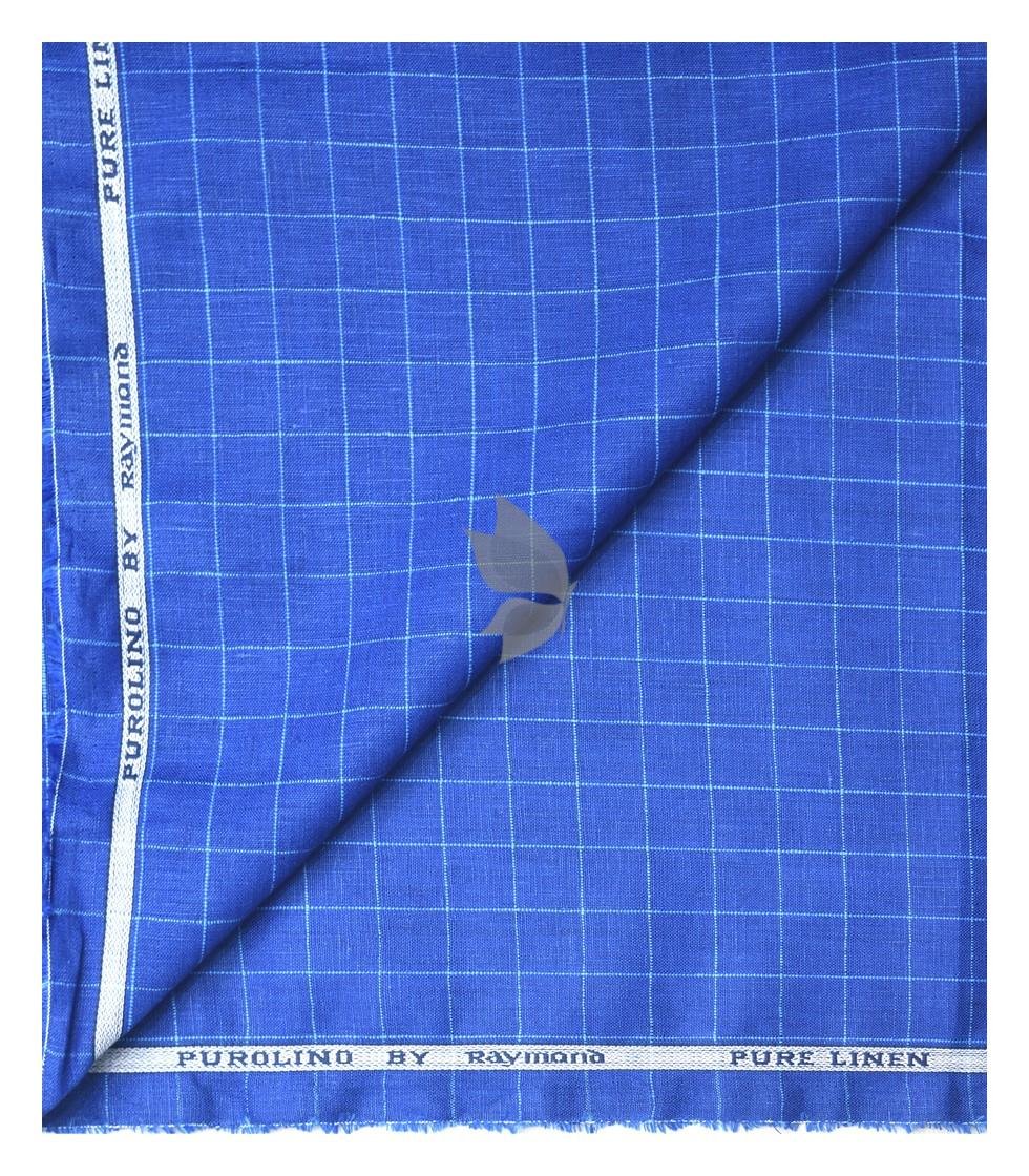 Raymond 100% Pure Linen Blue (Ultramarine) color Checkered Unstitched Shirt Fabric of 1.6 meters / VV2389Z