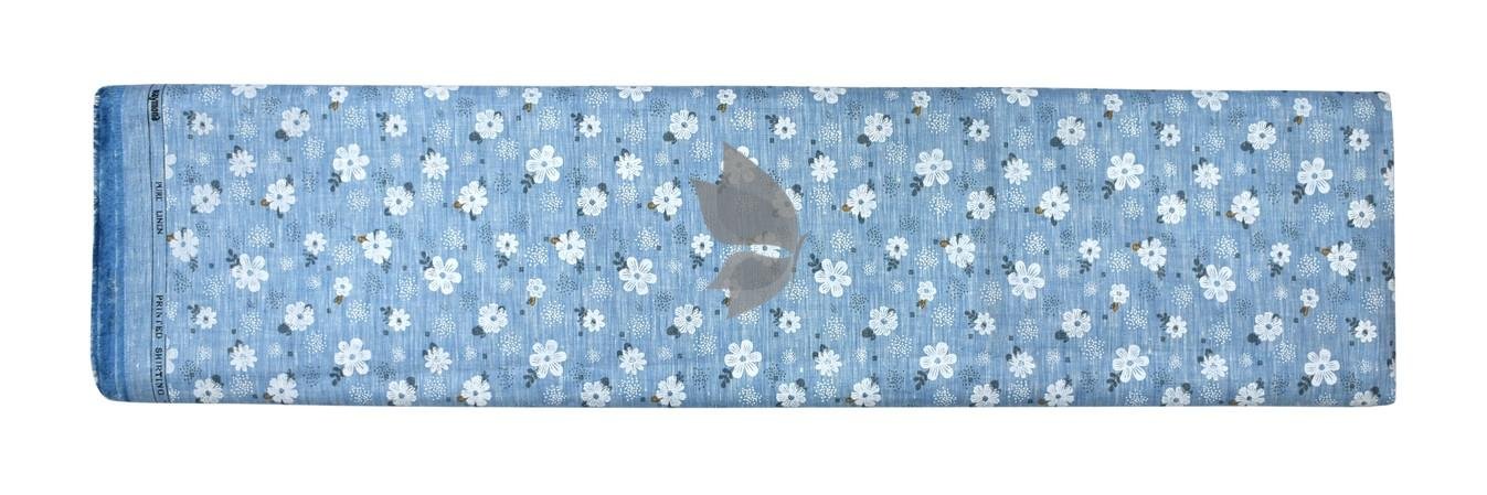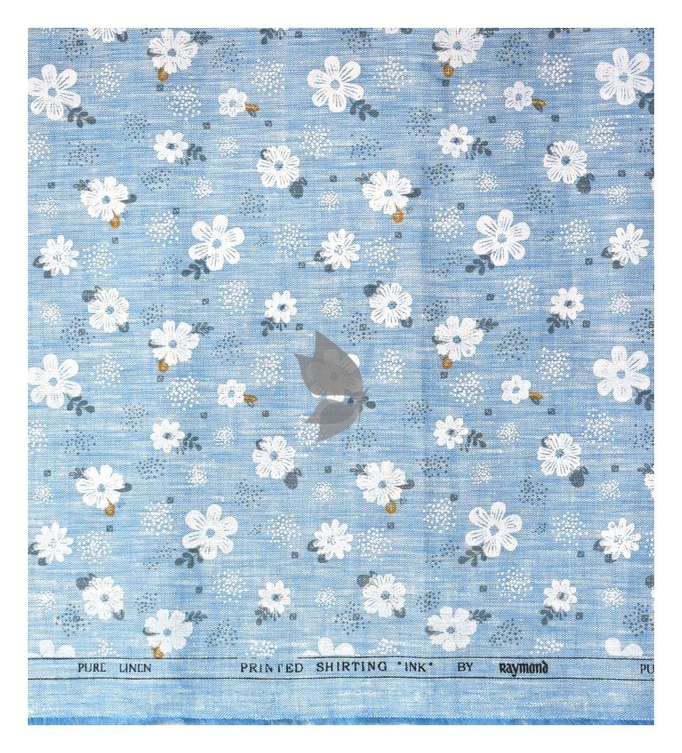 Raymond 100% Pure Linen Light Blue color Printed Unstitched Shirt Fabric of 1.6 meters / VV2389K