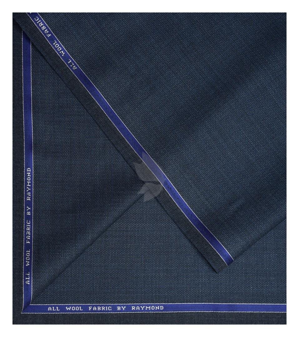 Raymond 100% Pure Wool (All Wool) Thick Blue Color Self Checkered Unstitched Suit Fabric - 3.5 Mts / VV2043