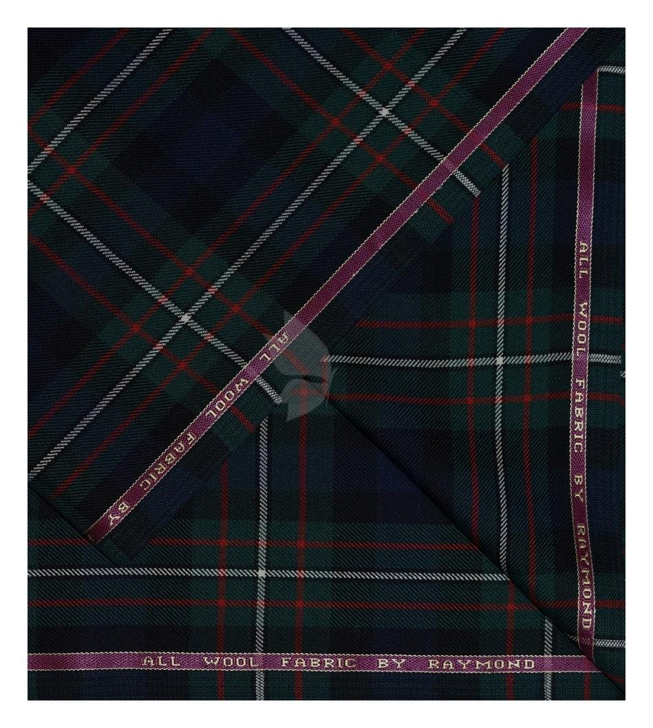 Raymond 100% Pure Wool (All Wool) Thick Green Broad Color Checkered Unstitched Suit Fabric - 3.5 Mts / VV2032