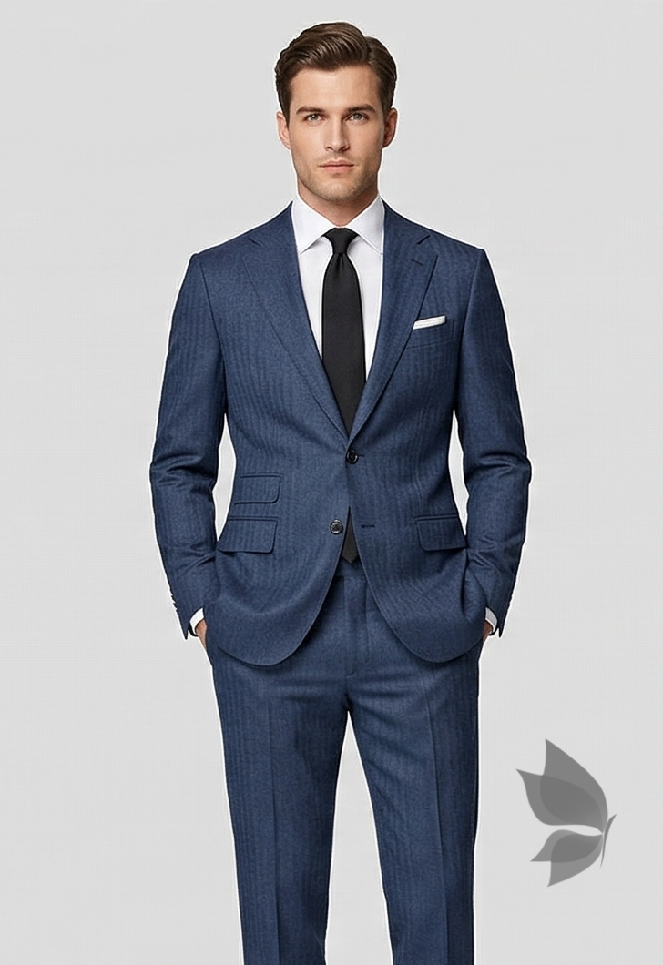 Raymond 100% Pure Wool (All Wool) with HERRINGBONE Weaving Plain Blue Color Unstitched Suit Fabric - 3 Mts / VV2102