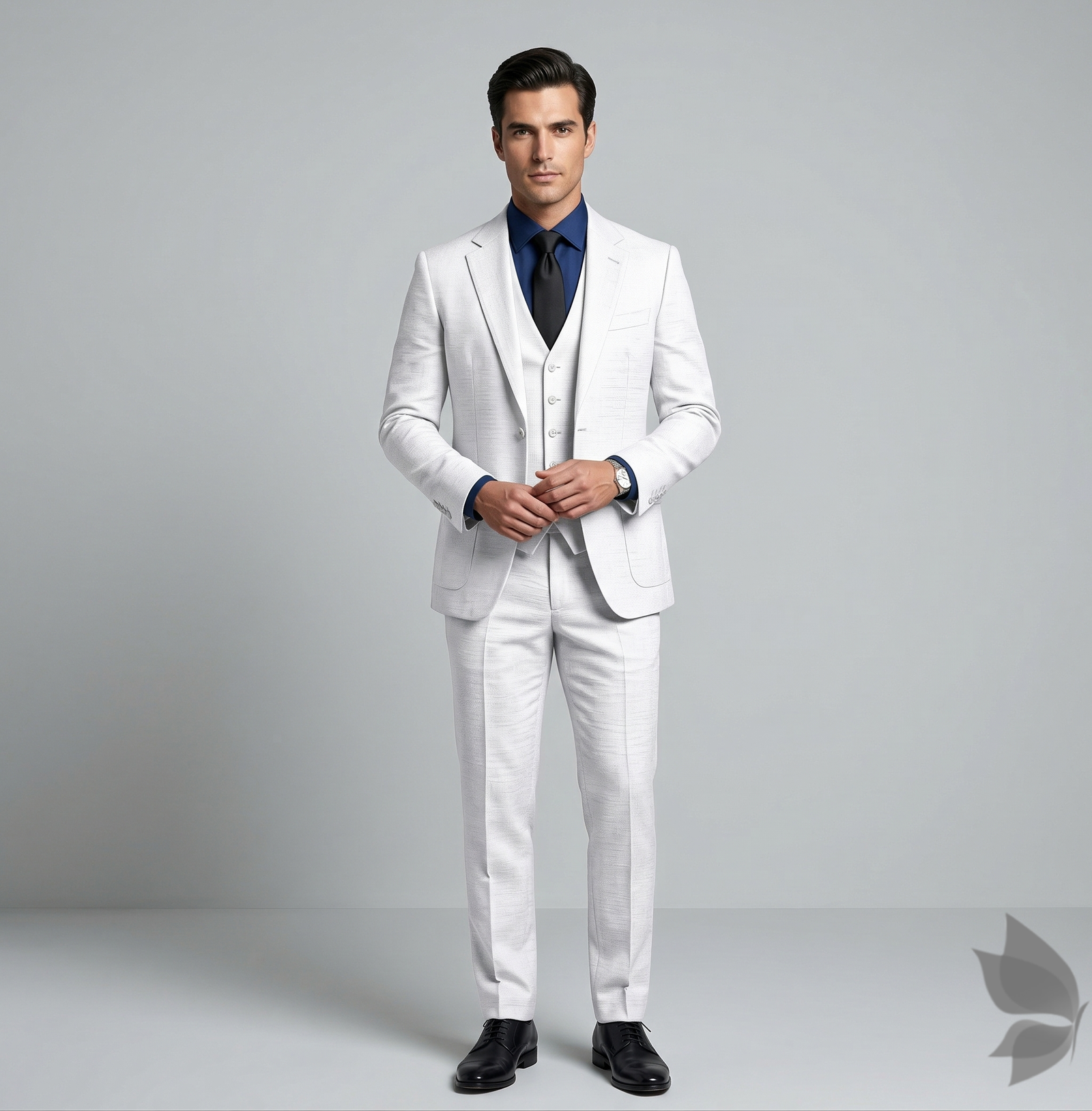 Raymond 35% Viscose blended White colour Solid Pattern Unstitched Suit Fabric of 3.25 Mts / VV2347