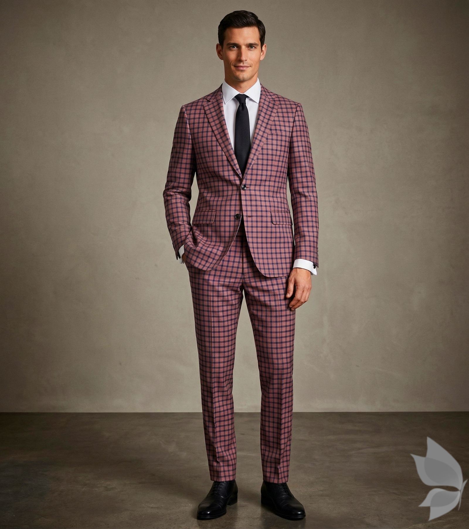 Raymond Adorn Super 90's Merino Wool Peach checkered Suit Fabric-3.0 mts / VV6817