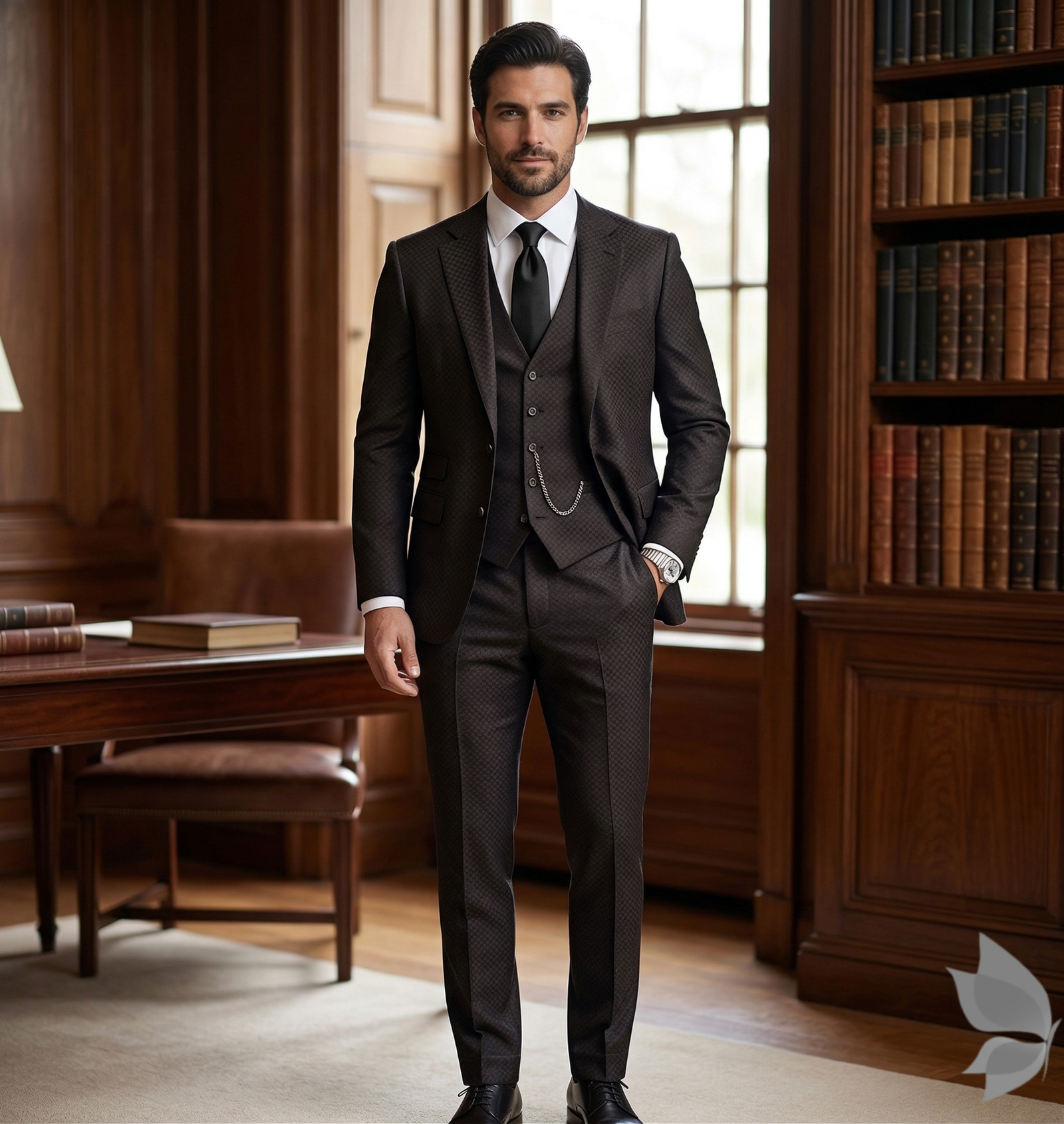 Raymond Australian Merino wool blend with Smart Stretch and made from Fine Merino Wool Self Design Pattern Maroon (Snuff) colour Unstitched Suit Fabric of 3.25 meters / VV2599