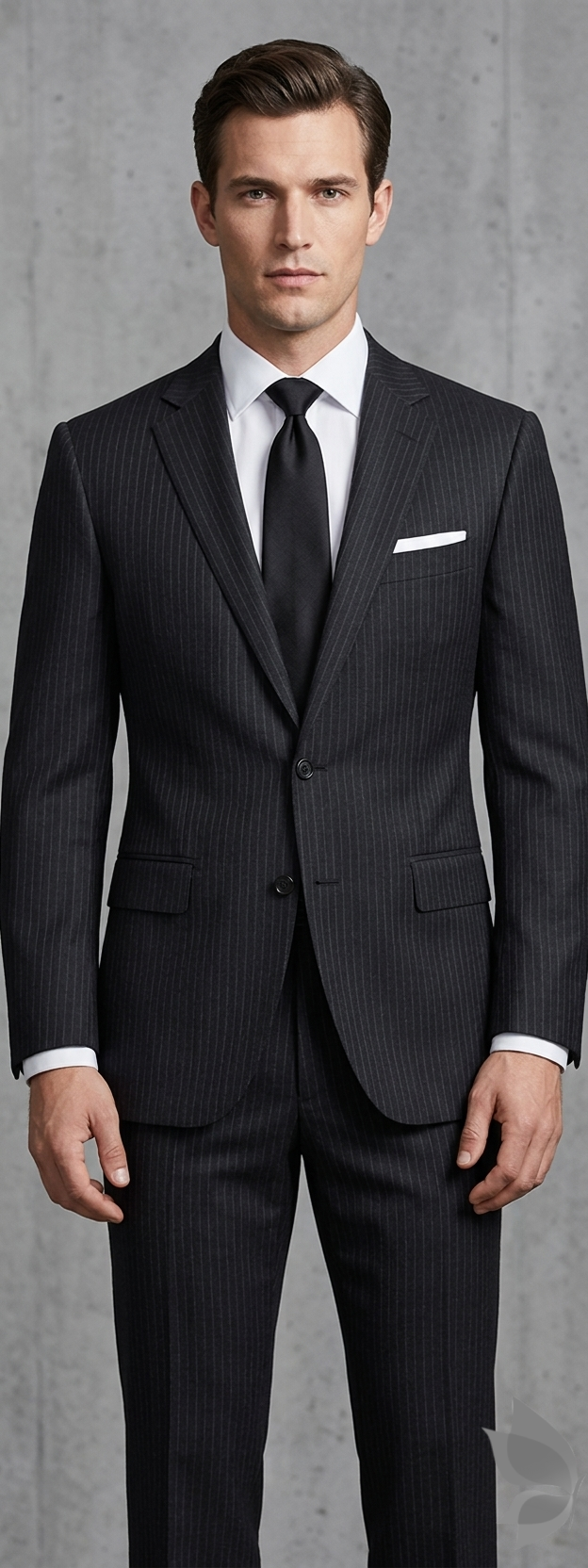 Raymond Australian Merino wool blend with Smart Stretch and made from Fine Merino Wool Striped Pattern Black colour Unstitched Suit Fabric of 3.25 meters / VV2594