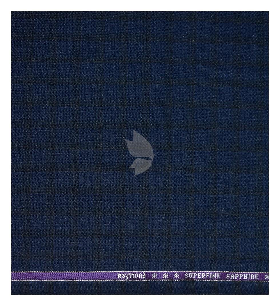 Raymond Australian Merino Wool blended Checkered pattern and Fabric for all Seasons Wear Navy Blue Colour Unstitched Suit Fabric of 3 Mts / VV2472