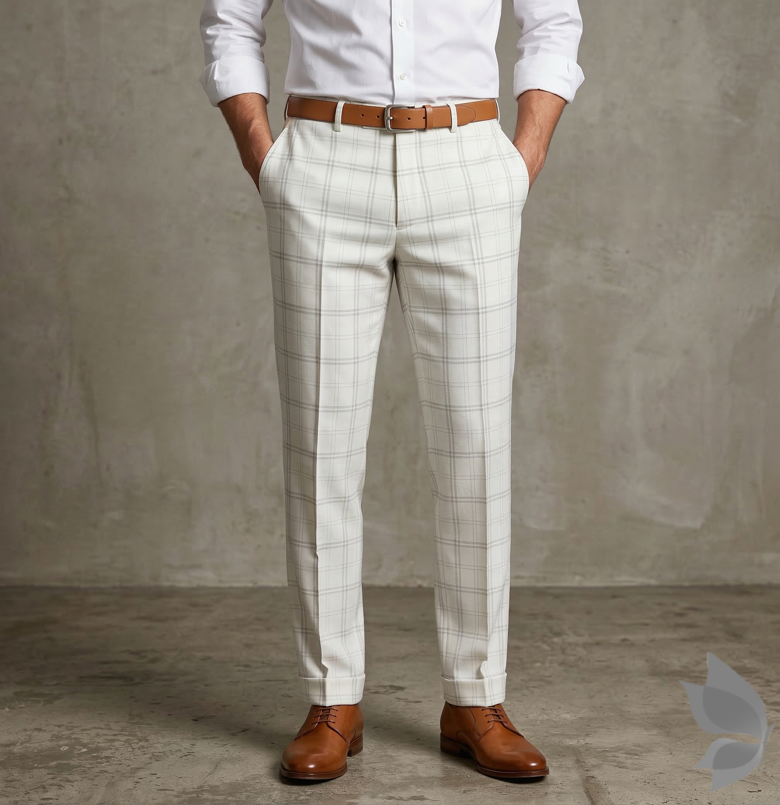 Raymond Caprio Collection made from Super 90's wool with 60% wool rich blend Beige colour Checkered pattern Unstitched Trouser fabric of 1.3 Mts / VV2671