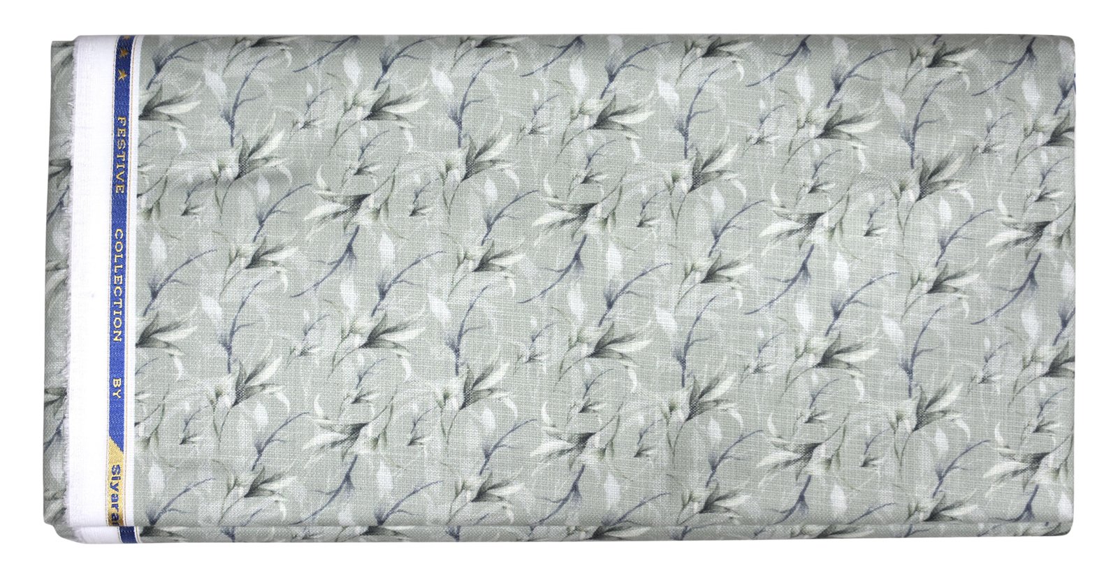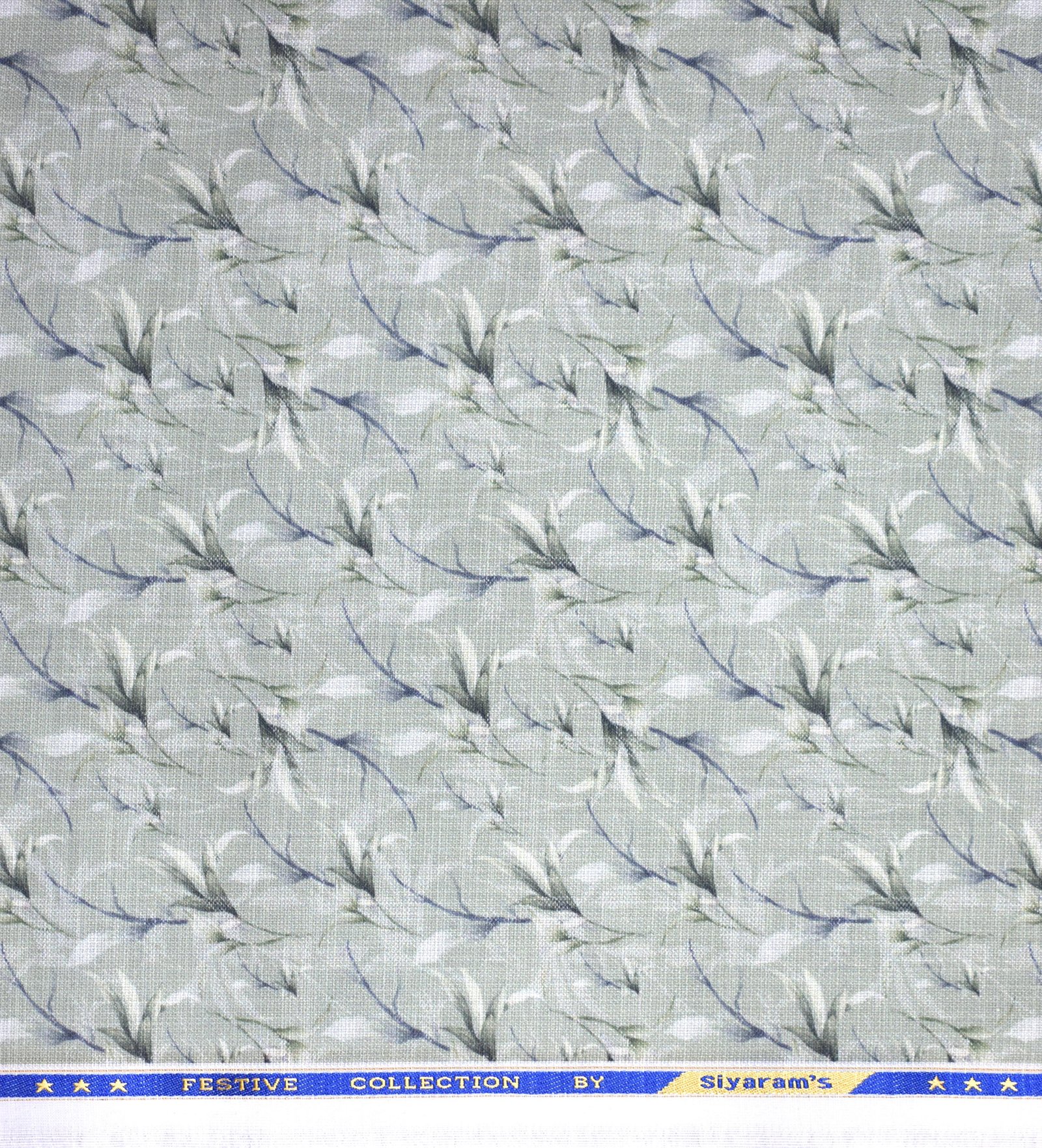 Siyarams festive collection printed pattern with hemp blended Green (Celadon) color unstitched men's Kurta / sherwani / top fabric of 2 meters / VV2303