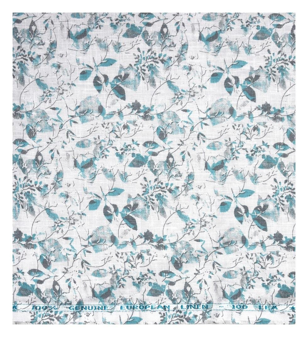 Weaves Empire 100% Genuine European Linen with 100 LEA count Blue colour Printed Unstitched Shirt Fabric - 1.60 Mts / VV2191