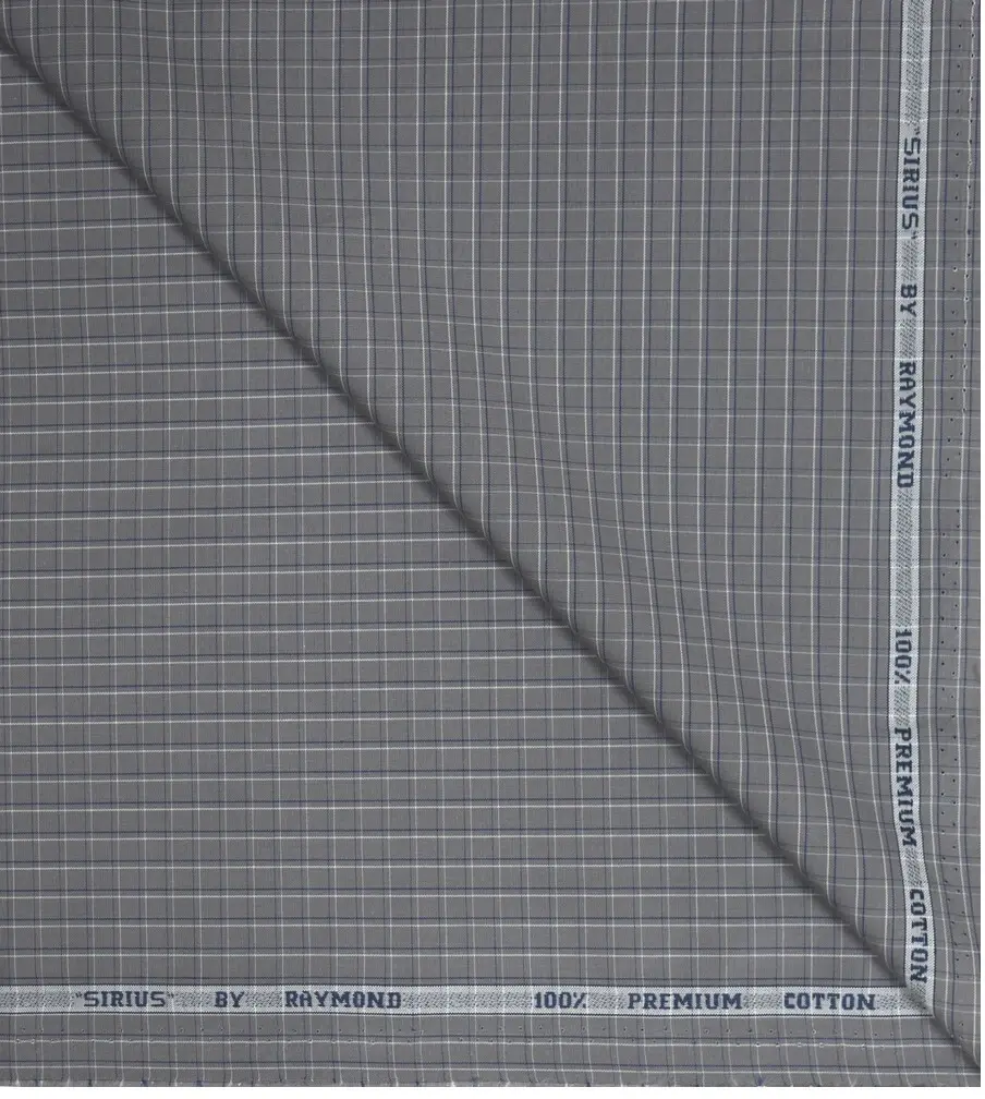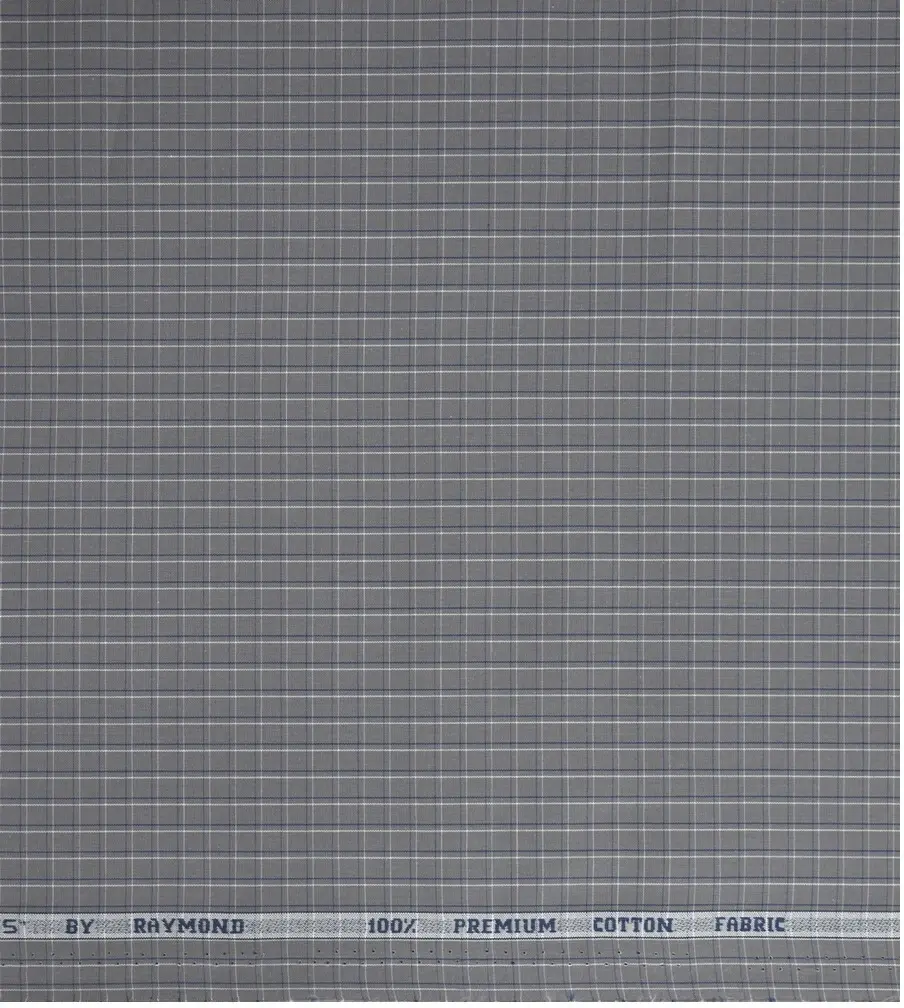 Raymond 100% Premium Cotton Grey Checkered Unstitched Shirt Fabric - 1.60 meters / VV6935
