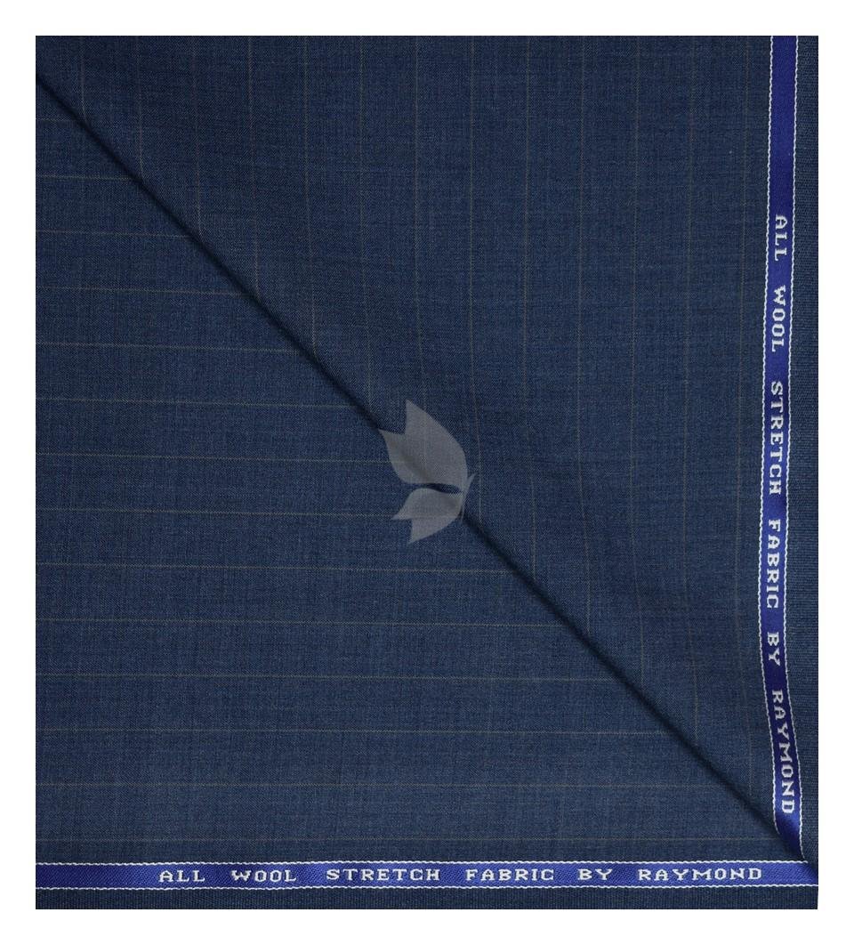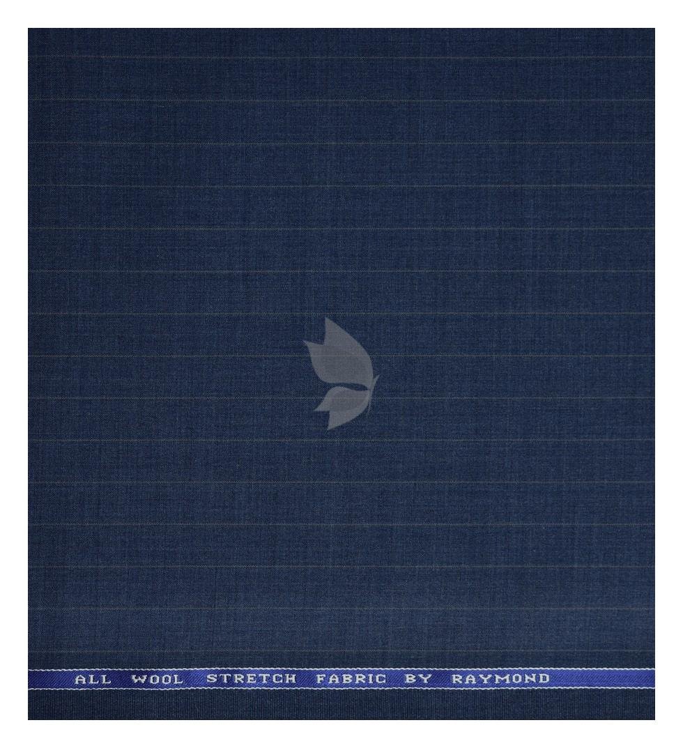 Raymond 100% Pure Wool (All Wool) Blue Color Striped with Stretch Unstitched trouser Fabric - 1.30 Mts / VV2004