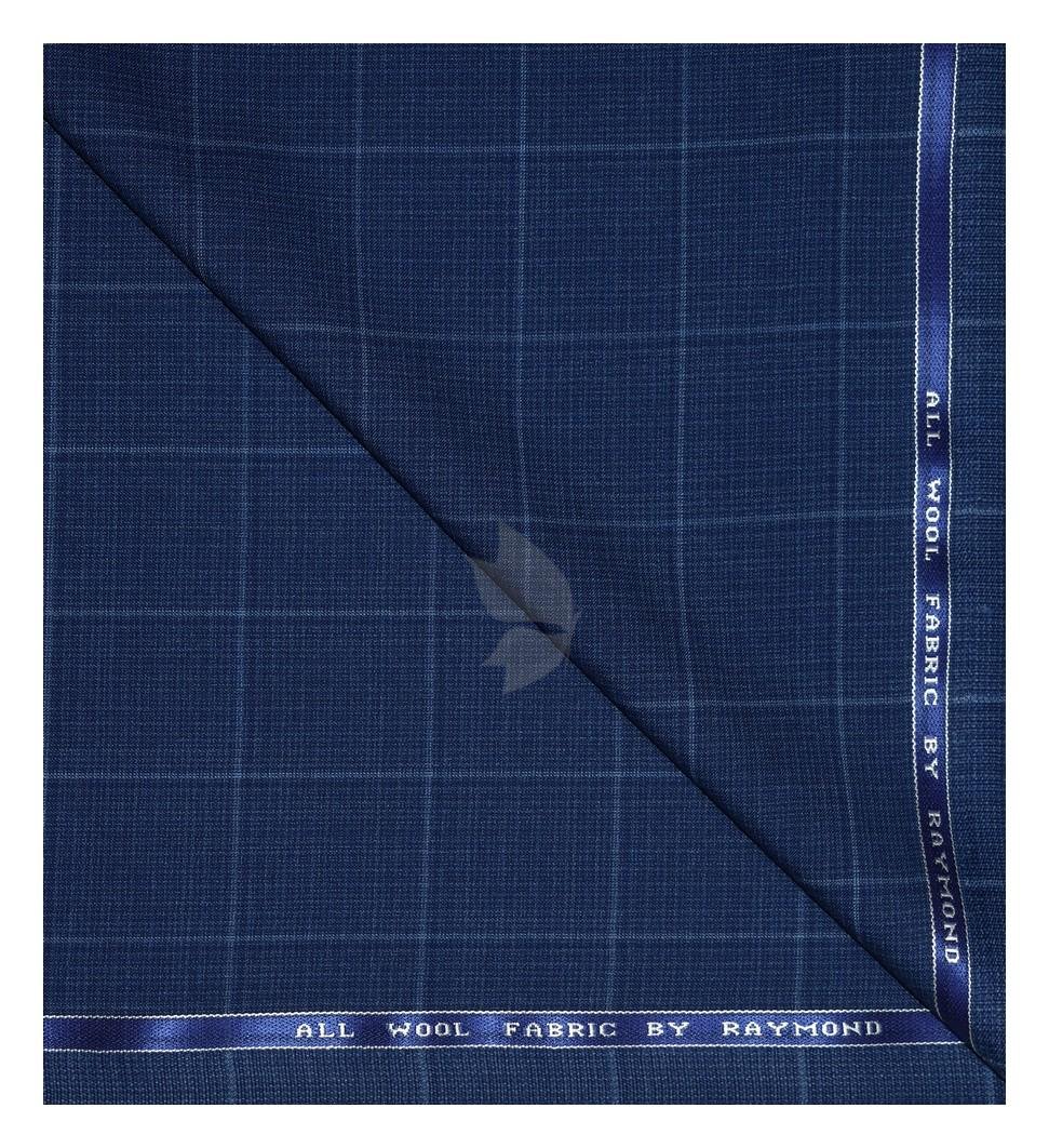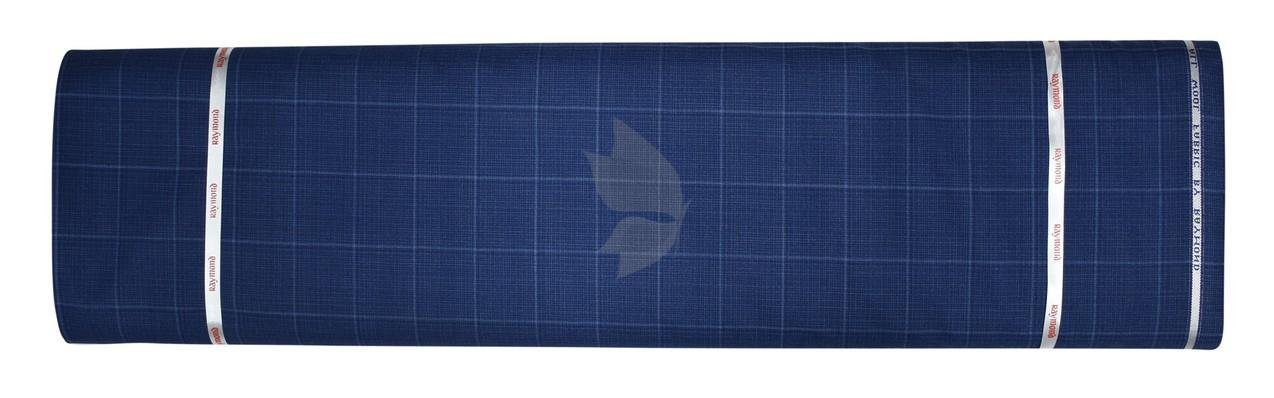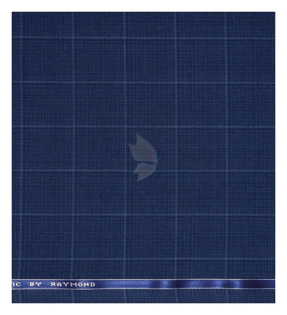 Raymond 100% Pure Wool (All Wool) Thick Blue Color Checkered Unstitched Trouser Fabric - 1.3 Mts / VV2035