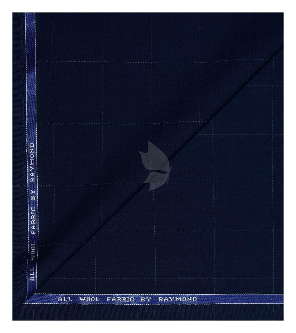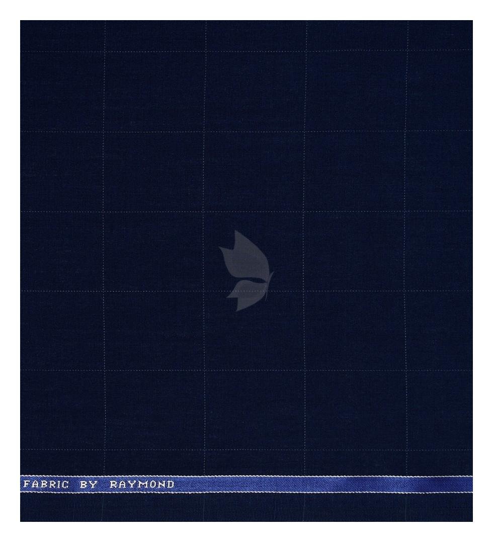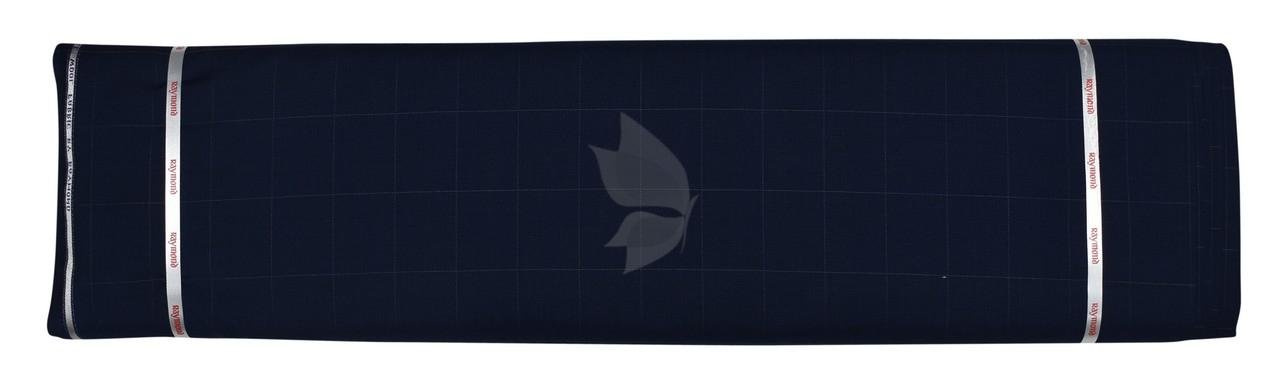 Raymond 100% Pure Wool (All Wool) Thick Navy Blue Color Checkered Unstitched Trouser Fabric - 1.25 Mts / VV2047