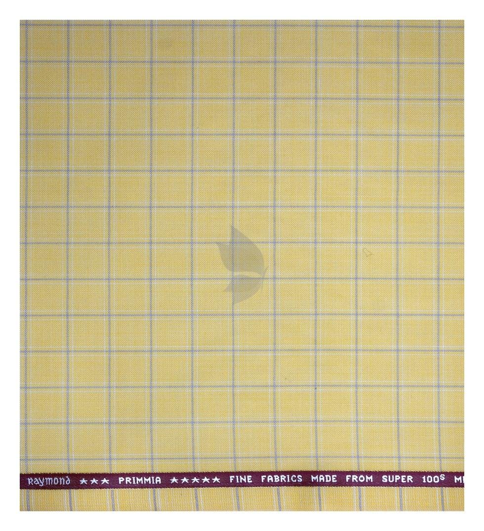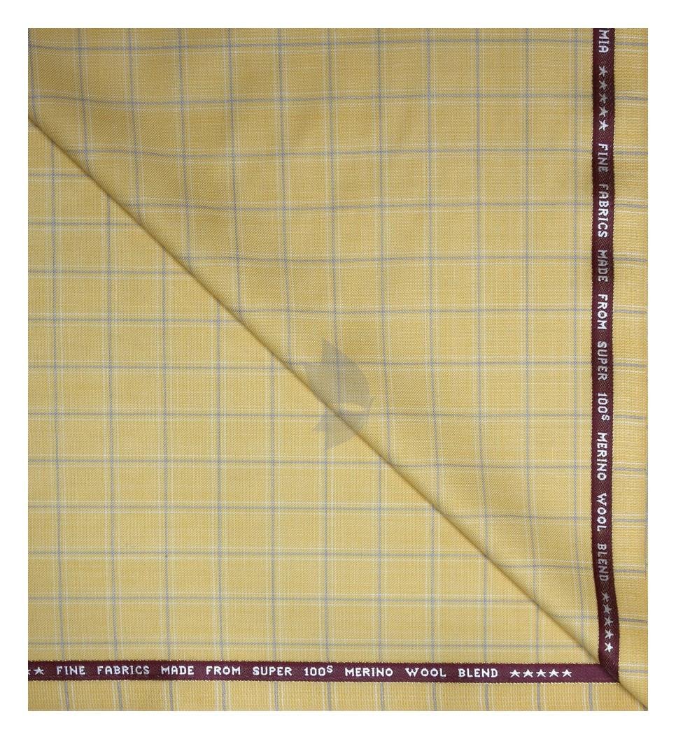 Raymond Super 100's Merino Wool Fine Fabric in Yellow colour with Blue and white Checkered Unstitched Trouser Fabric - 1.3 meters / VV2149