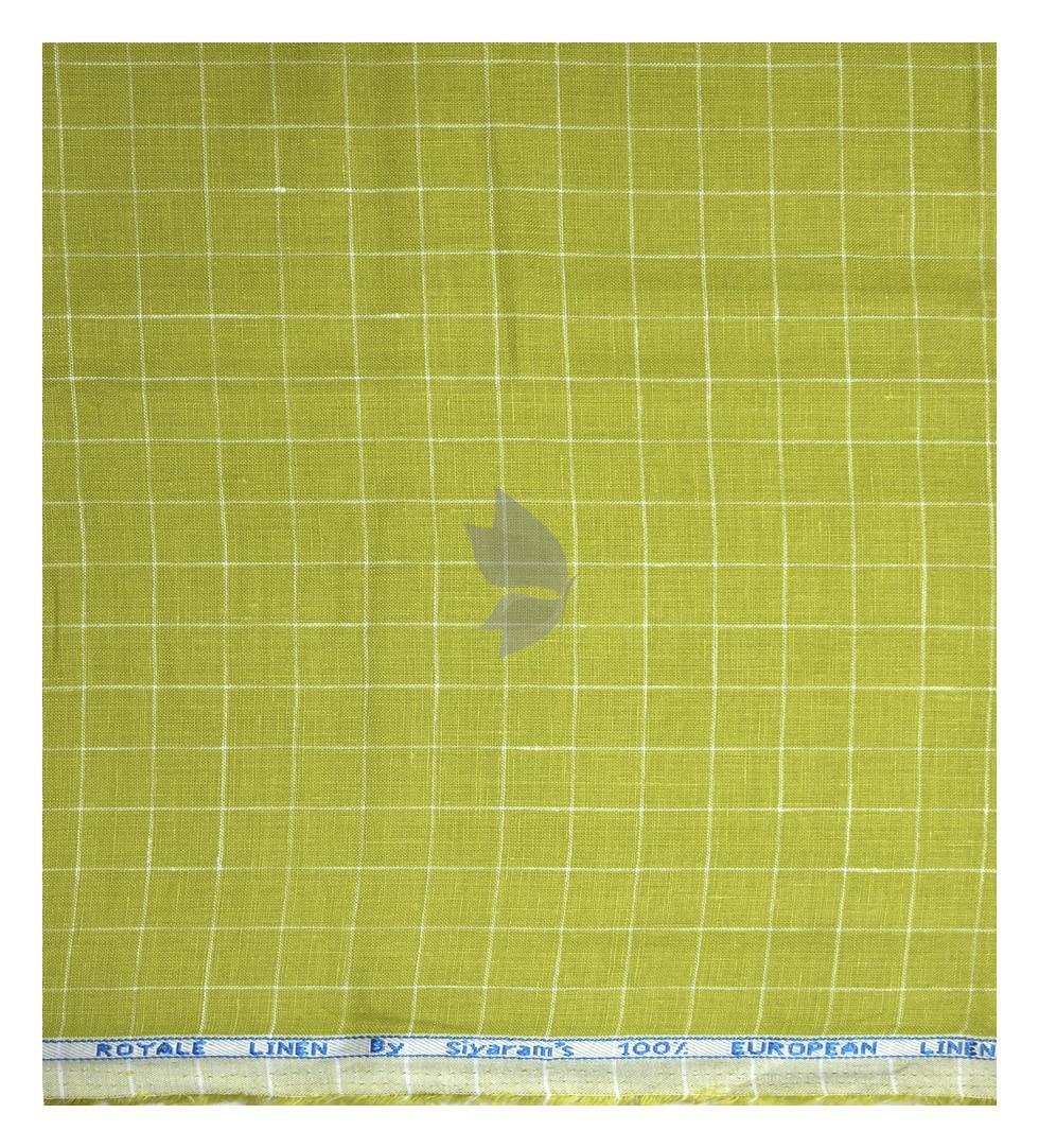 Siyaram's 100% Pure Linen 60 Lea Checkered Green (Lime) colour Unstitched Shirt Fabric of 1.60 mts / VV2365D
