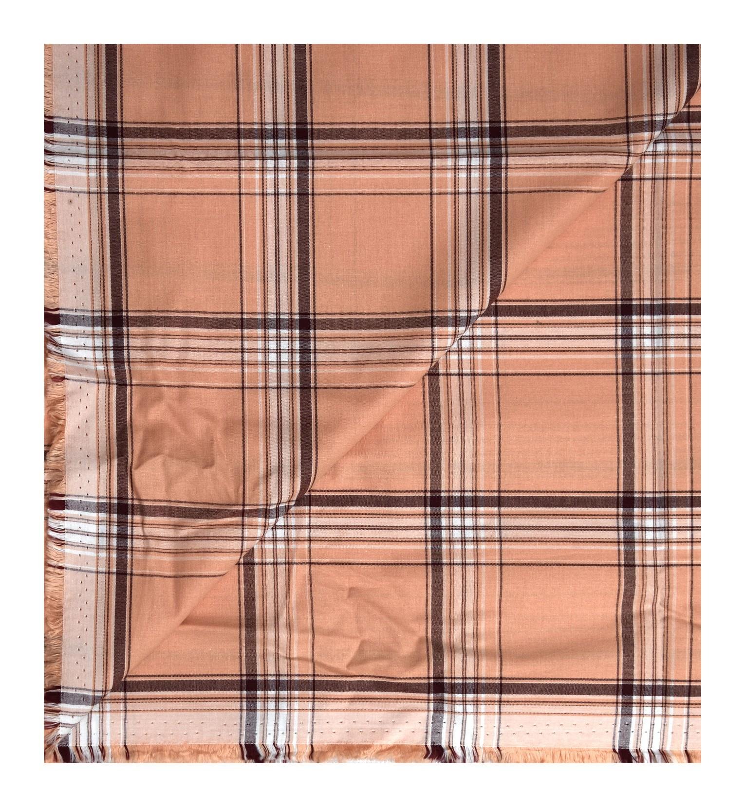 J. Hampstead Premium 100% Giza Cotton Peach Checkered Shirt Fabric 1.6 Mts / VV1185