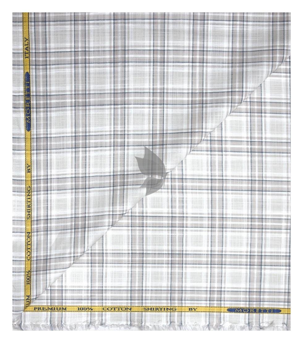 | J.Hampstead Moretti Premium Collection with 100% Giza Cotton Grey (Tan) colour Checkered Pattern Unstitched Shirt Fabric of 1.6 mts - Made In Italy / VV2540 |