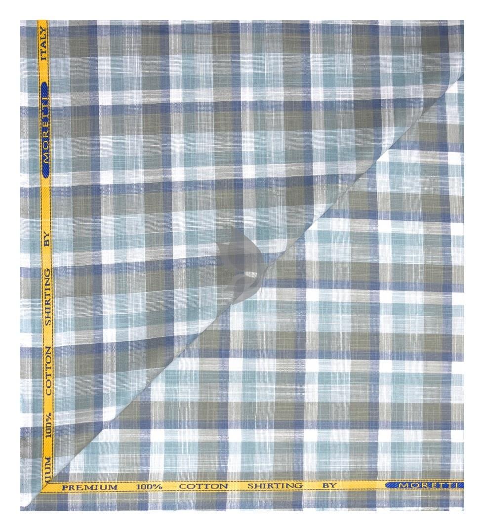 J.Hampstead Moretti Premium Collection with 100% Giza Cotton Multicolour Checkered Pattern Unstitched Shirt Fabric of 1.6 mts - Made In Italy / VV2542