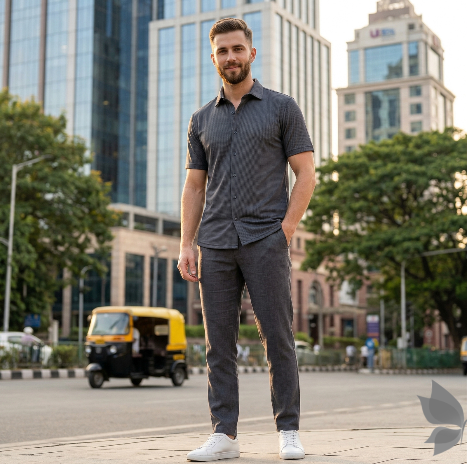 J.Hampstead Moretti Premium Egyptian Collection with 100% Giza Cotton Grey Colour Jacquard Pattern Unstitched Shirt Fabric of 1.6 mts - Made In Italy / VV2520